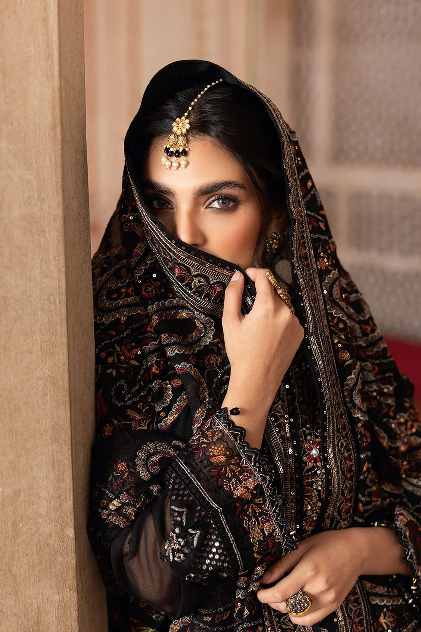 - Embroidered Chiffon Shawl with Sequence
