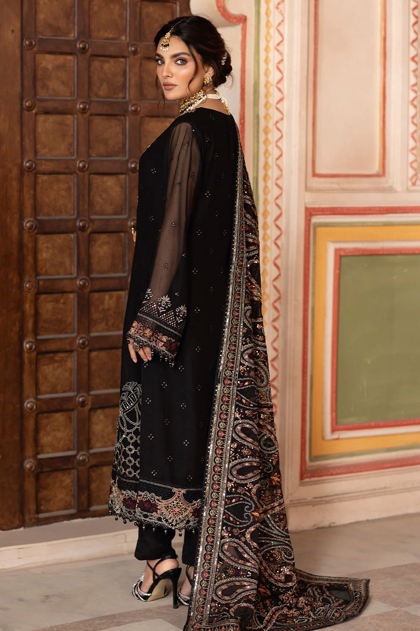 - Embroidered Chiffon Front with Sequence
