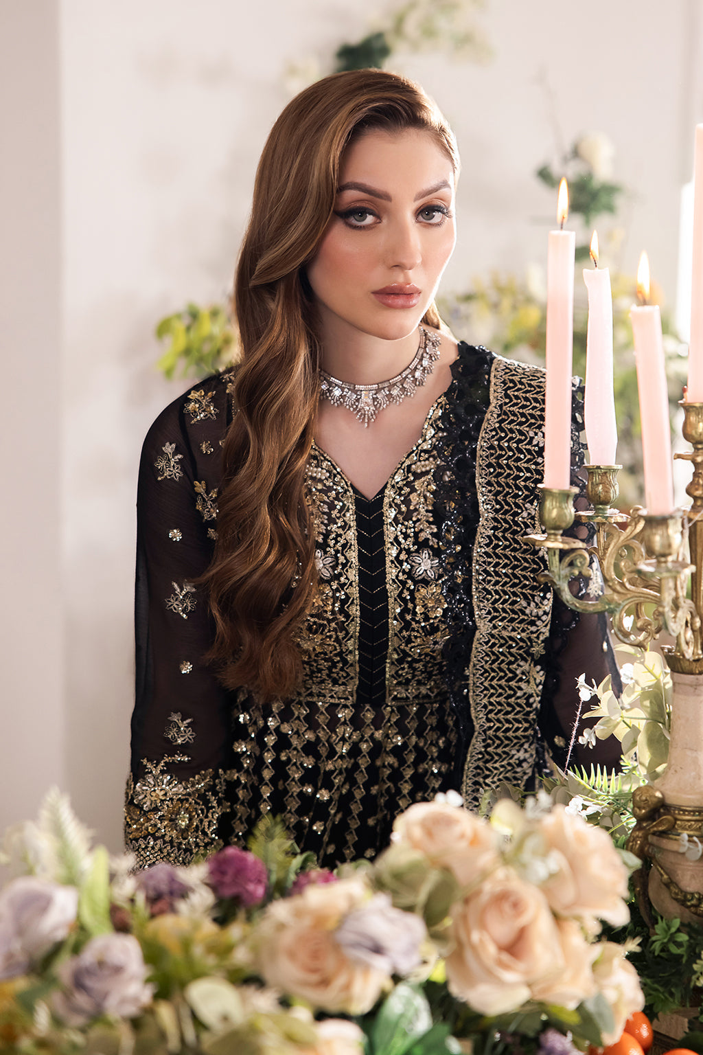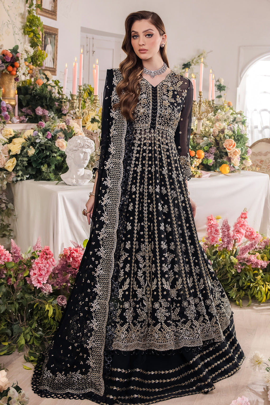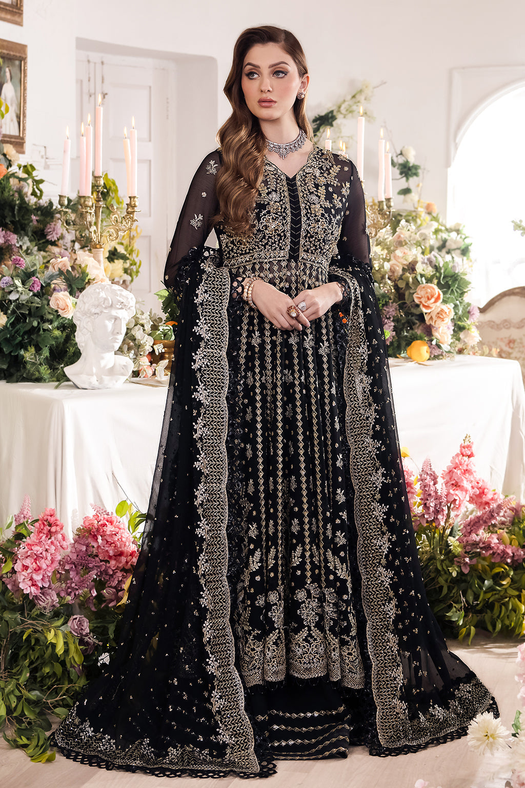 Embroidered Front Back Kali On Chiffon 12 Pieces