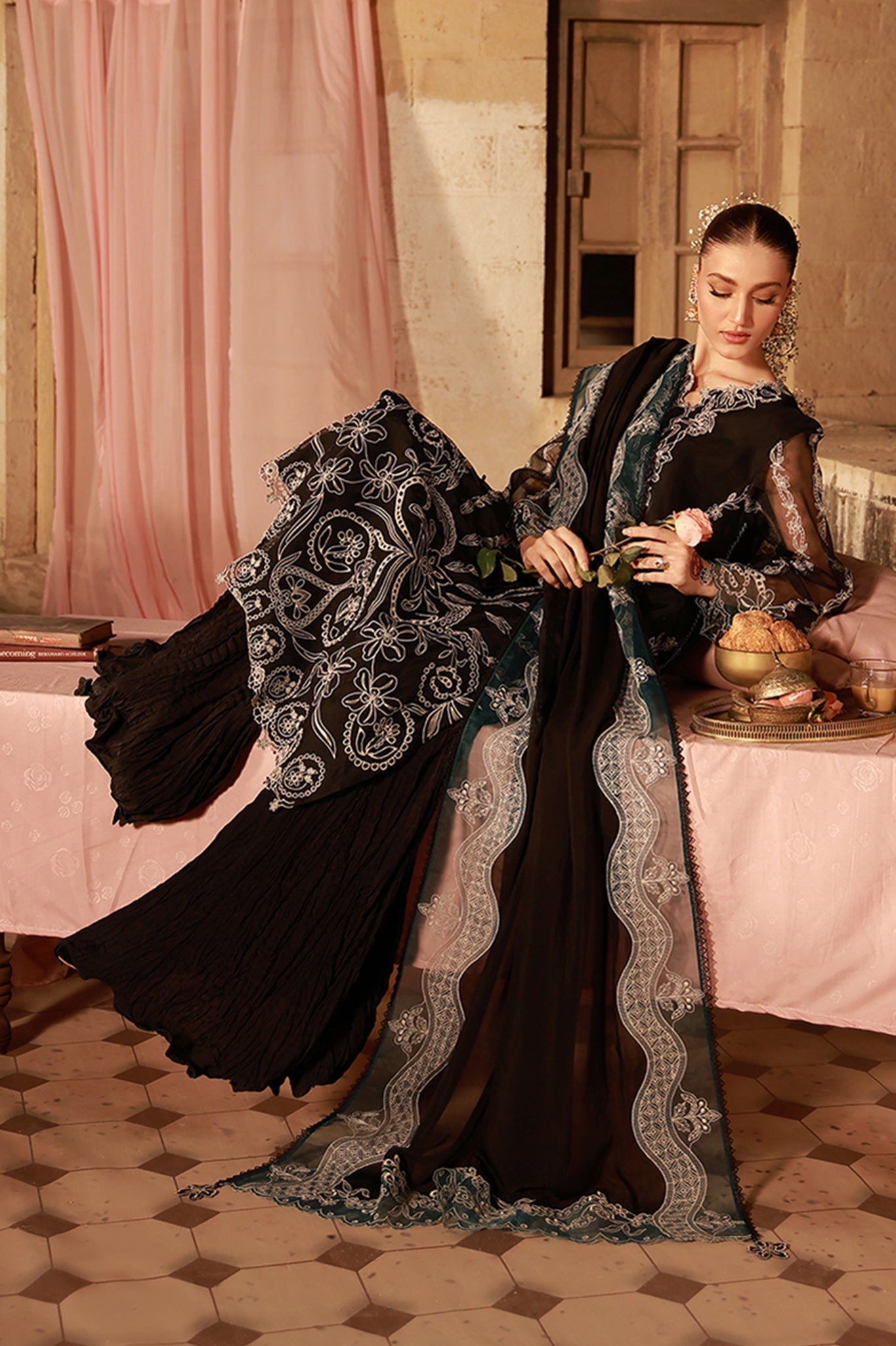 - Embroidered Dyed Sleeves (Organza) – 0.66 M