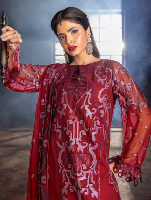3 Piece Unstitched Embroidered Chiffon Suit.