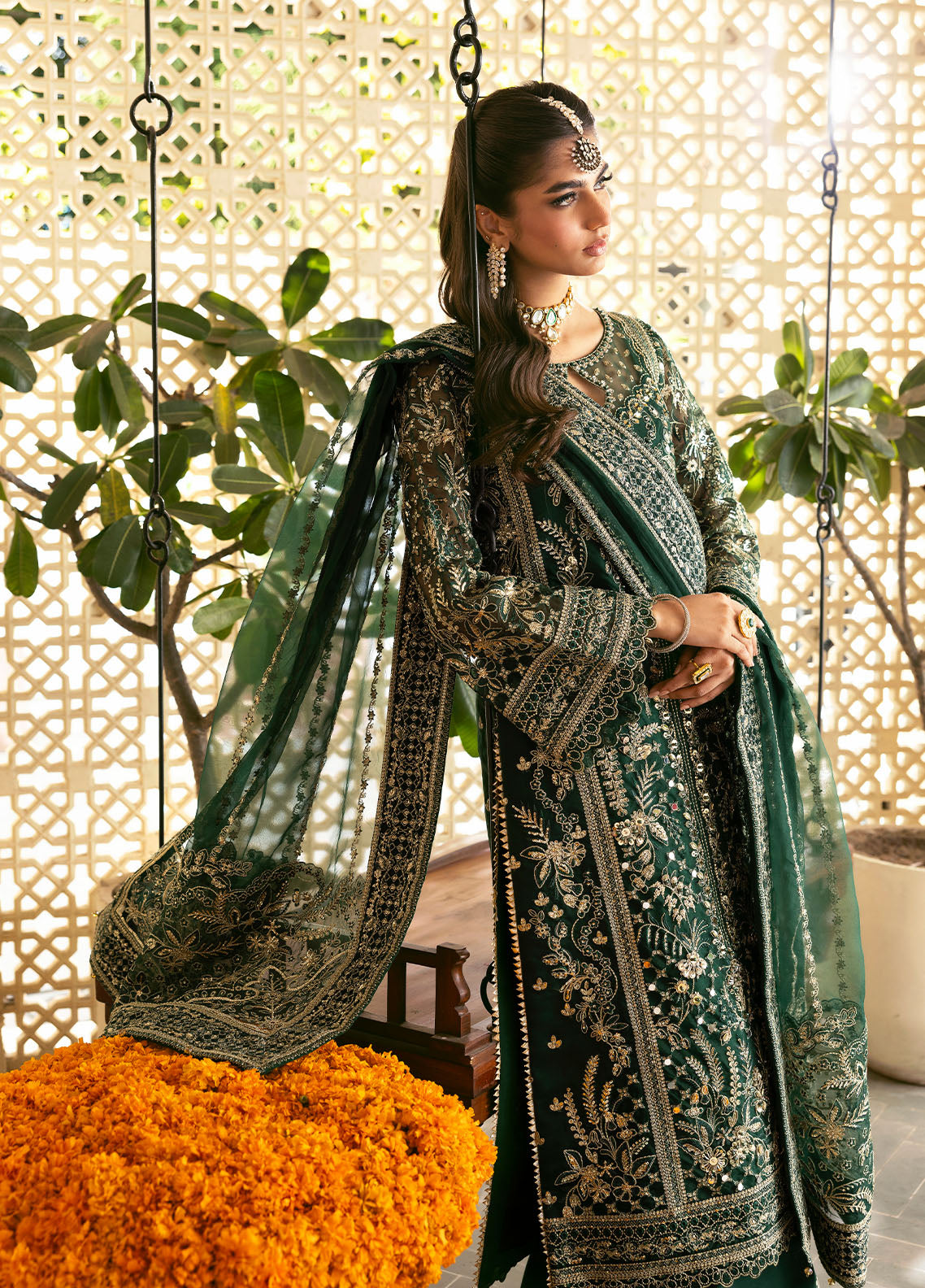 • Embroidered and sequined organza border for dupatta