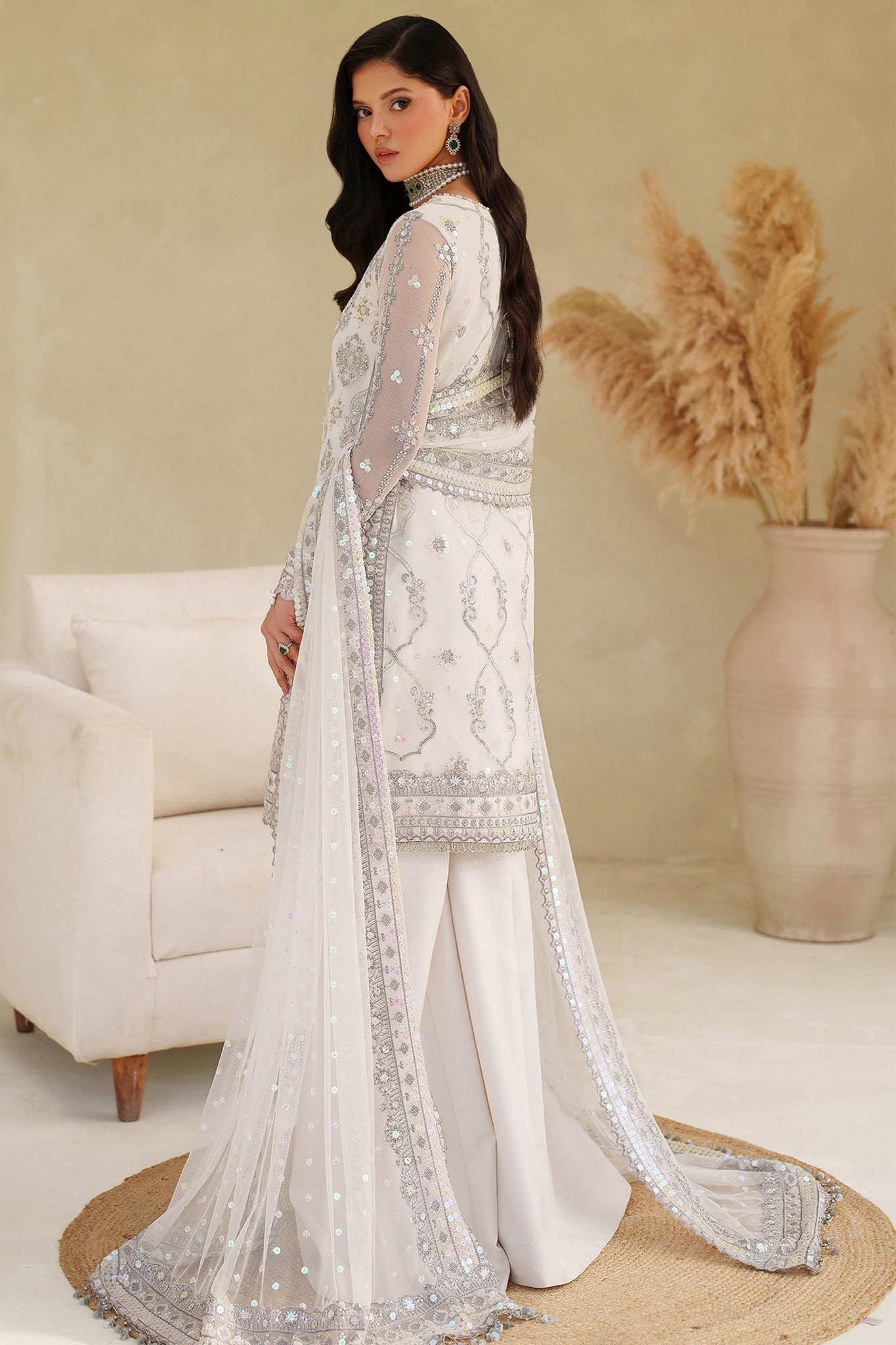 - Dupatta: 1-Sequins Embroidered Net Dupatta , 2- Embroidered Dupatta Pallu 2 Sides
