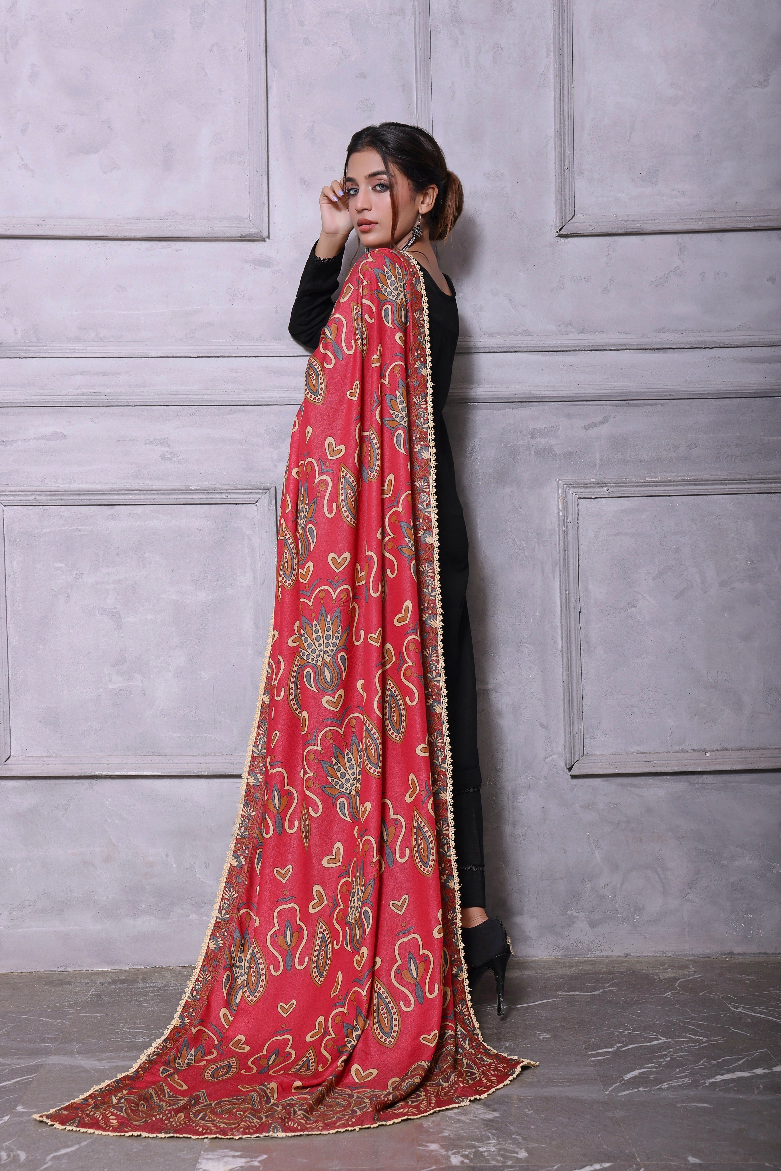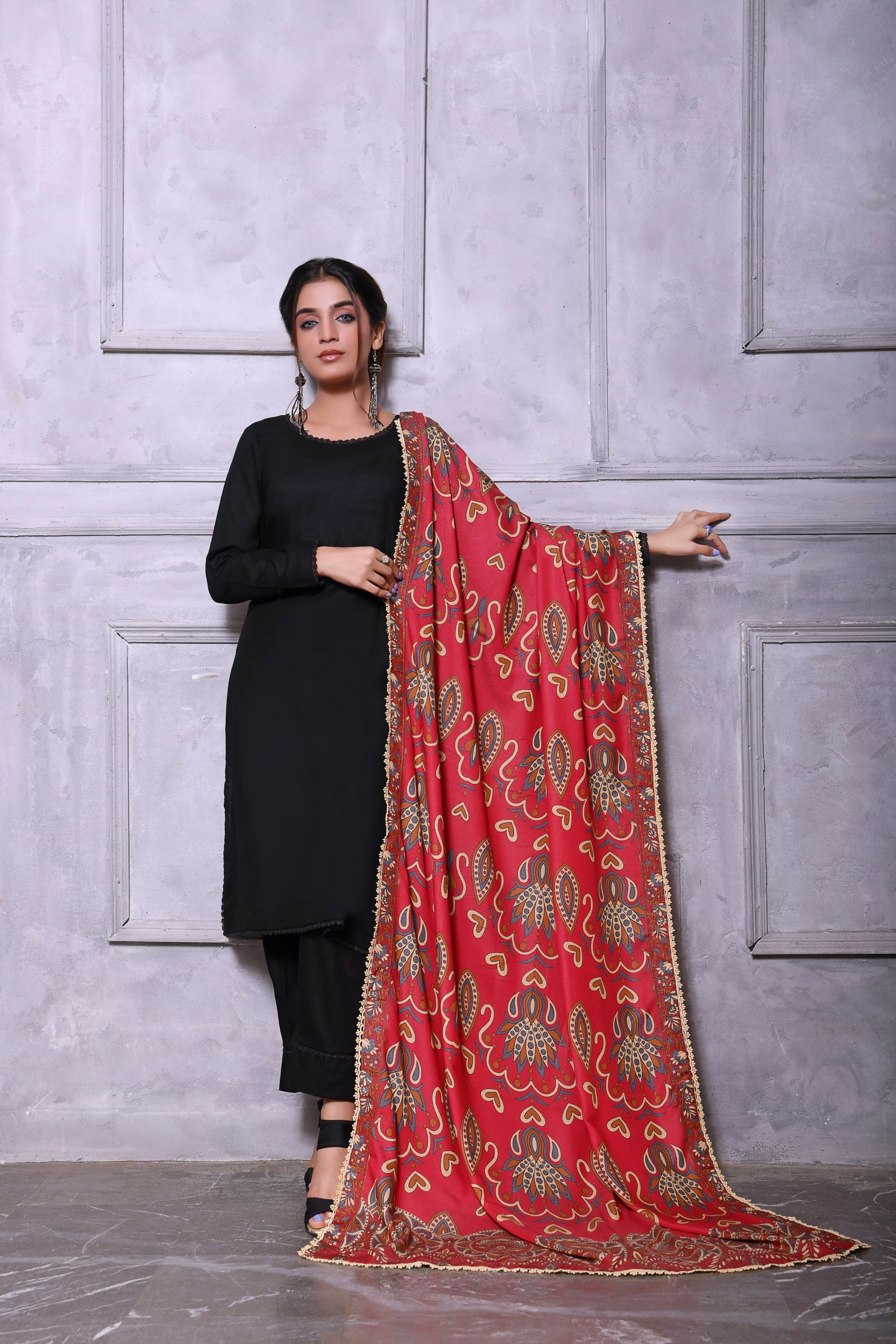 Experience an exquisitely (Unstitched) Digital Printed Karandi shawl with a plain dyed khaddar suit for a new go this winter season.The article includes:Digital Printed Karandi Shawl: 2.5 yardsPlain Dyed Khaddar Shirt & Trouser Fabric: 5.4 yardsDISCLAIMER: COLORS MIGHT APPEAR SLIGHTLY DIFFERENT DUE TO THE PHOTOGRAPHIC/LIGHTING EQUIPMENT USED. SOME ACCESSORIES/EMBELLISHMENTS USED ARE ONLY FOR SHOOT PURPOSES AND NOT PART OF THE ACTUAL SUIT.