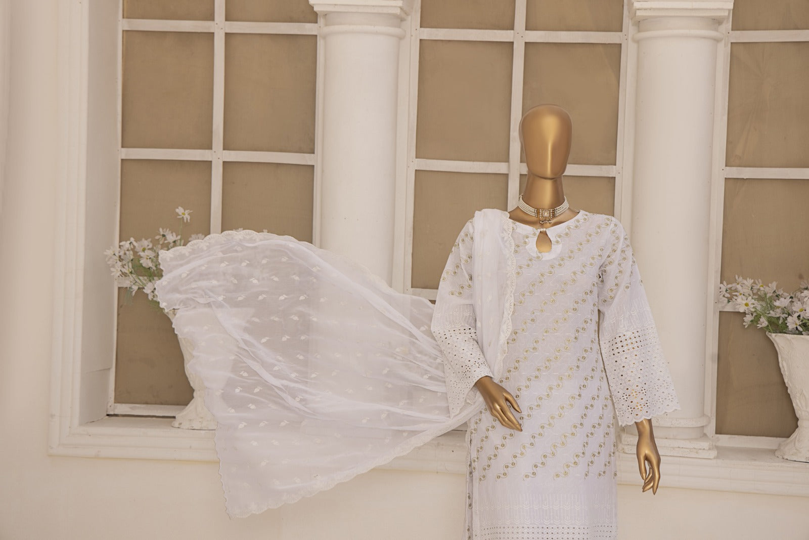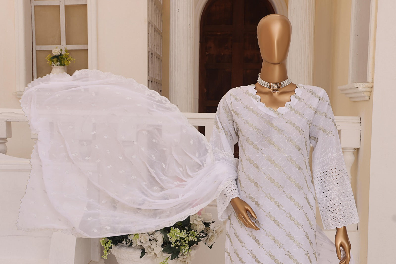Unstitched Dyed Zari Schiffli Embroidered Back