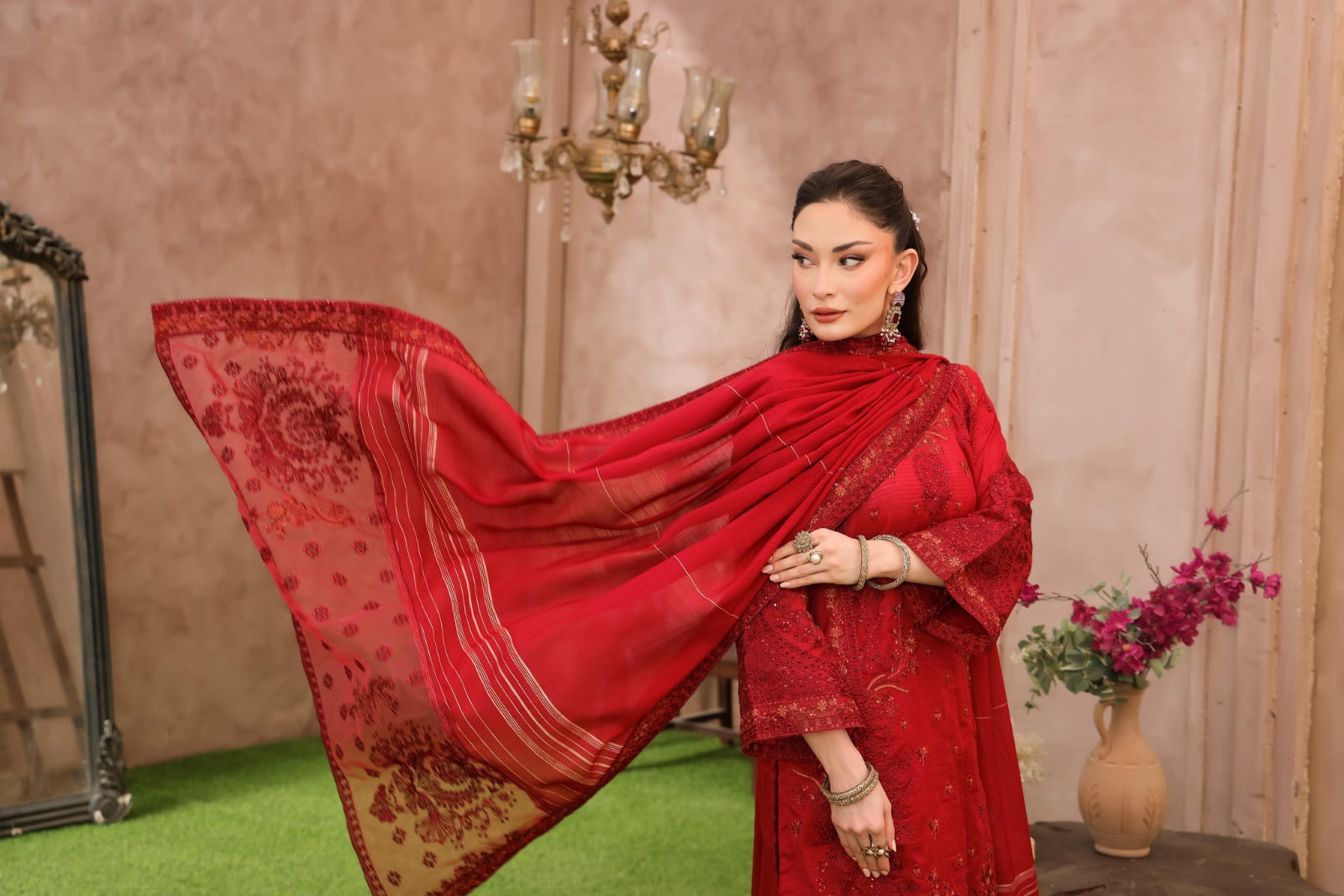 Fancy Pallu Tilla Diamond Embroidered Duppata