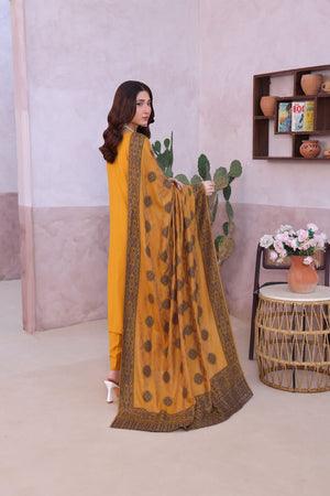 "Unstitched Dyed Embroidered Slub Dhanak Peach Front