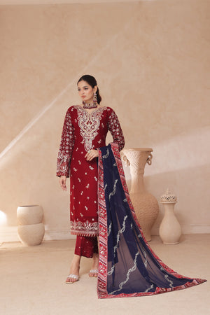 Azrina By Dressline Semi Stitched 3 Piece Chiffon Collection'2025-azrina-DKredBlack