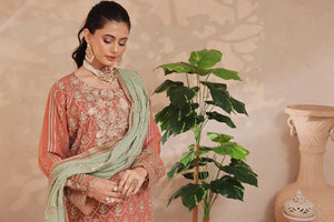 • Dupatta: A graceful embroidered chiffon & organza blend, adding a soft flow and ethereal charm to the look.