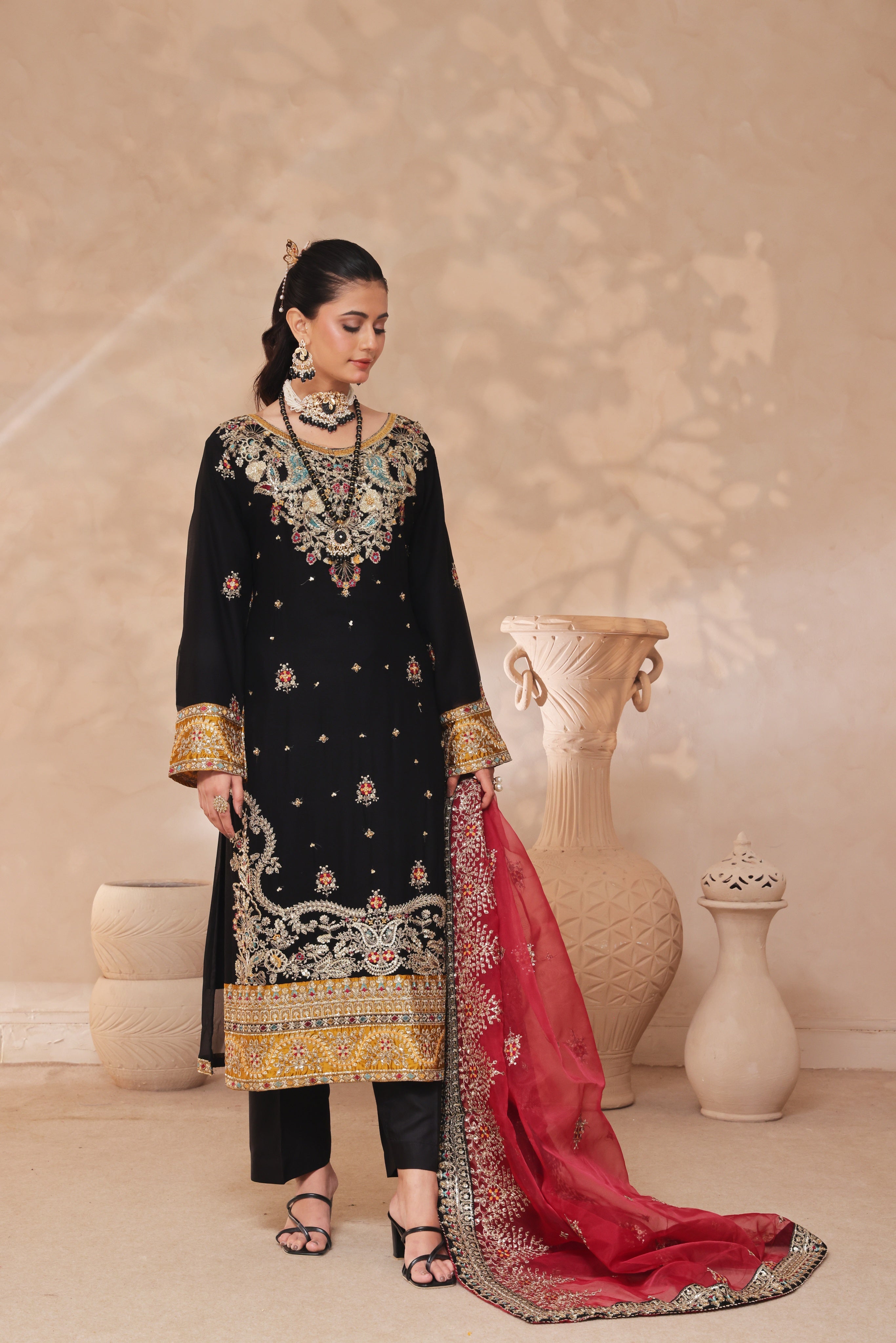 Azrina By Dressline Semi Stitched 3 Piece Chiffon Collection'2025-azrina-blackred