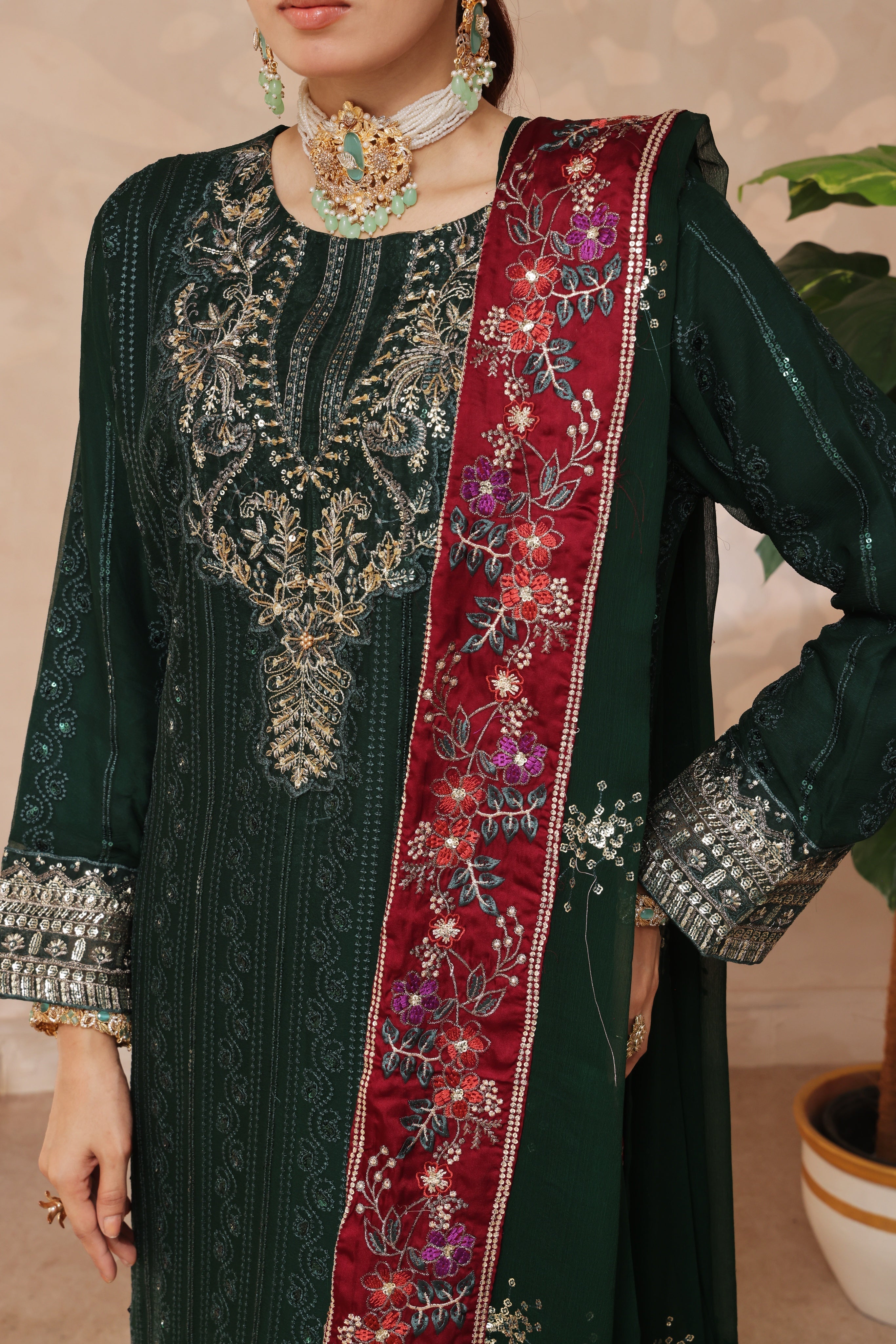 Azrina By Dressline Semi Stitched 3 Piece Chiffon Collection'2025-azrina-DKgreen