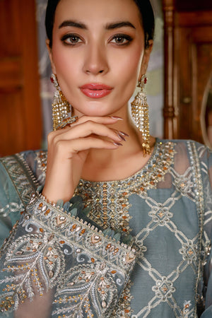 Exquisitely hand embellished with Dabka, different colours of Naqshi, Kashti, Drops, Nagg, different colours of cutt Dana, Banta moti and Katori sitarey.