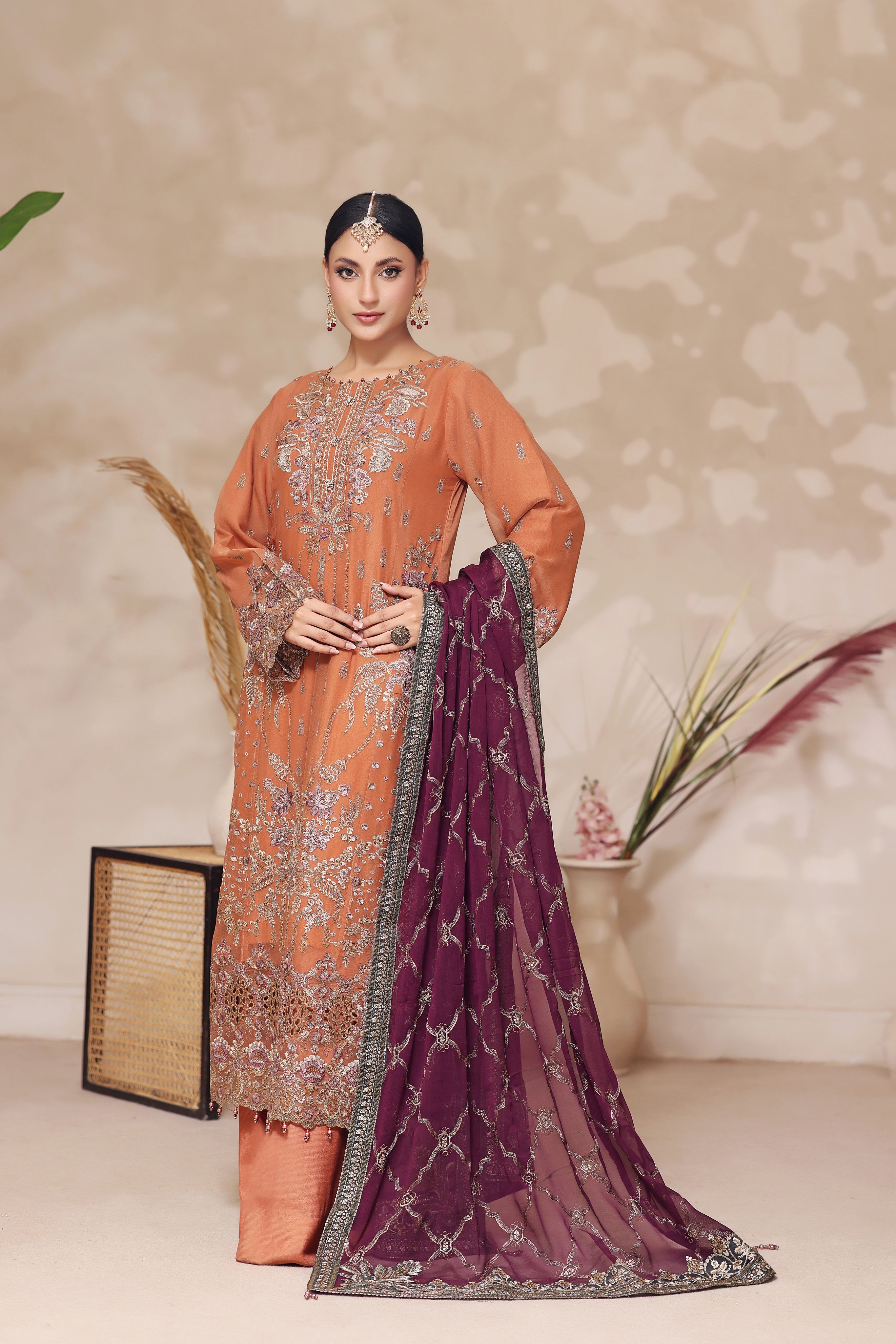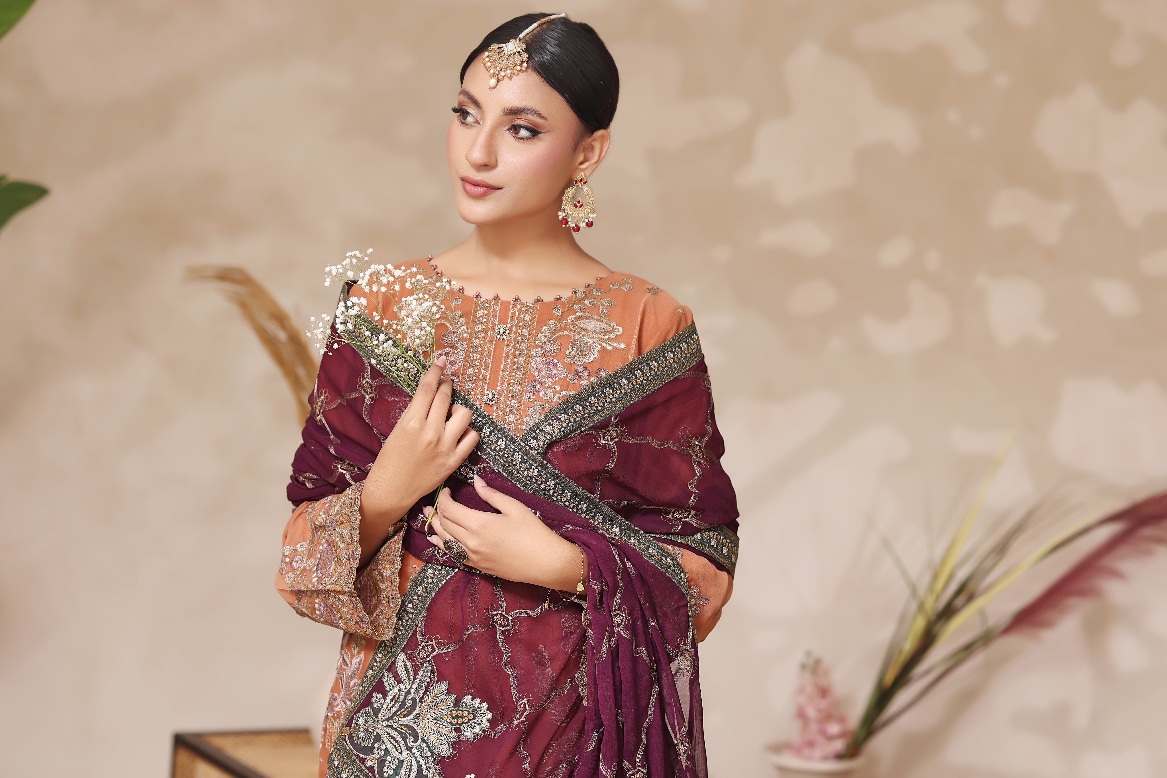 Fiza By Dressline Semi Stitched 3 Piece Chiffon Formals Collection'2025-fiza-semi-stitched-Amber-Glow