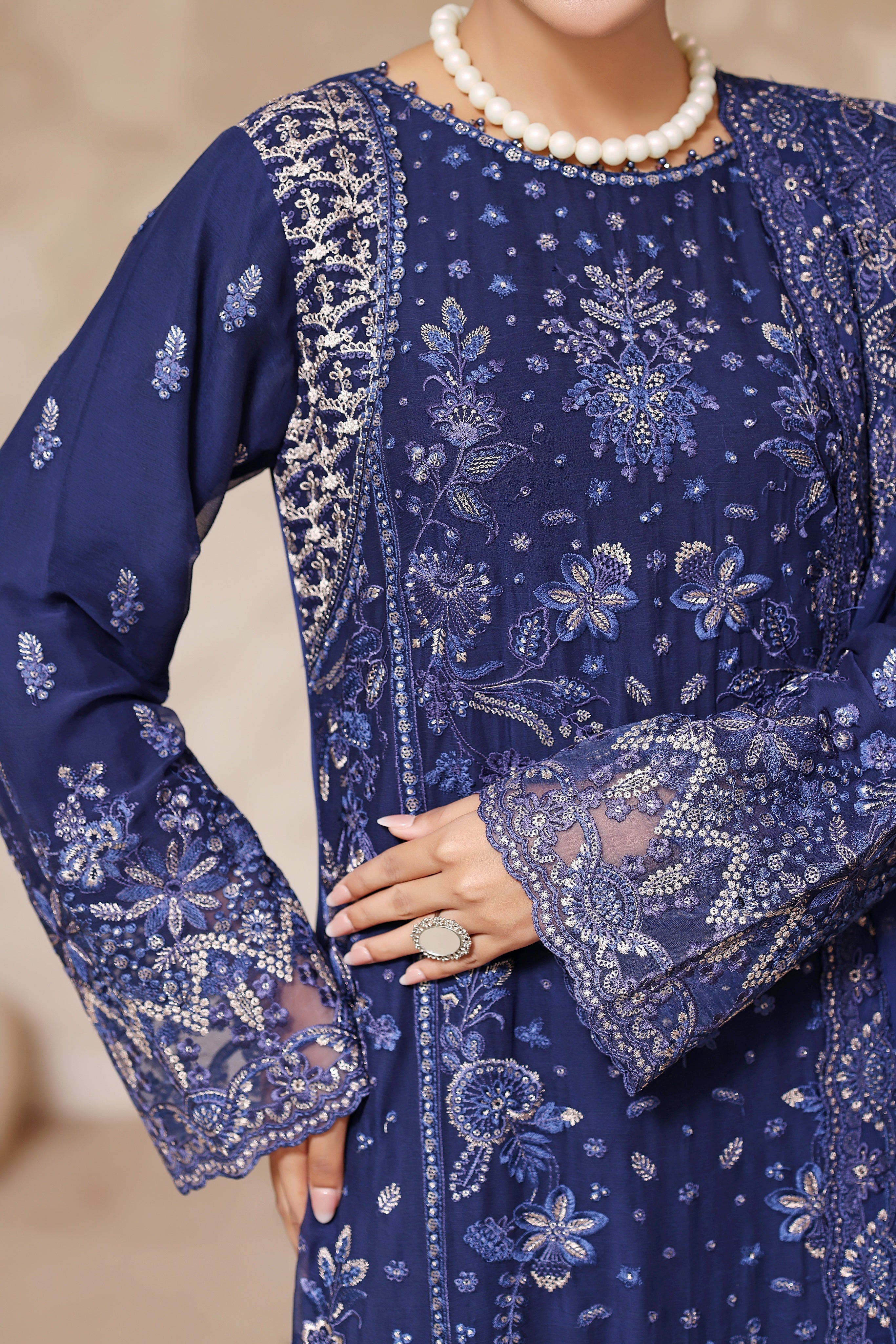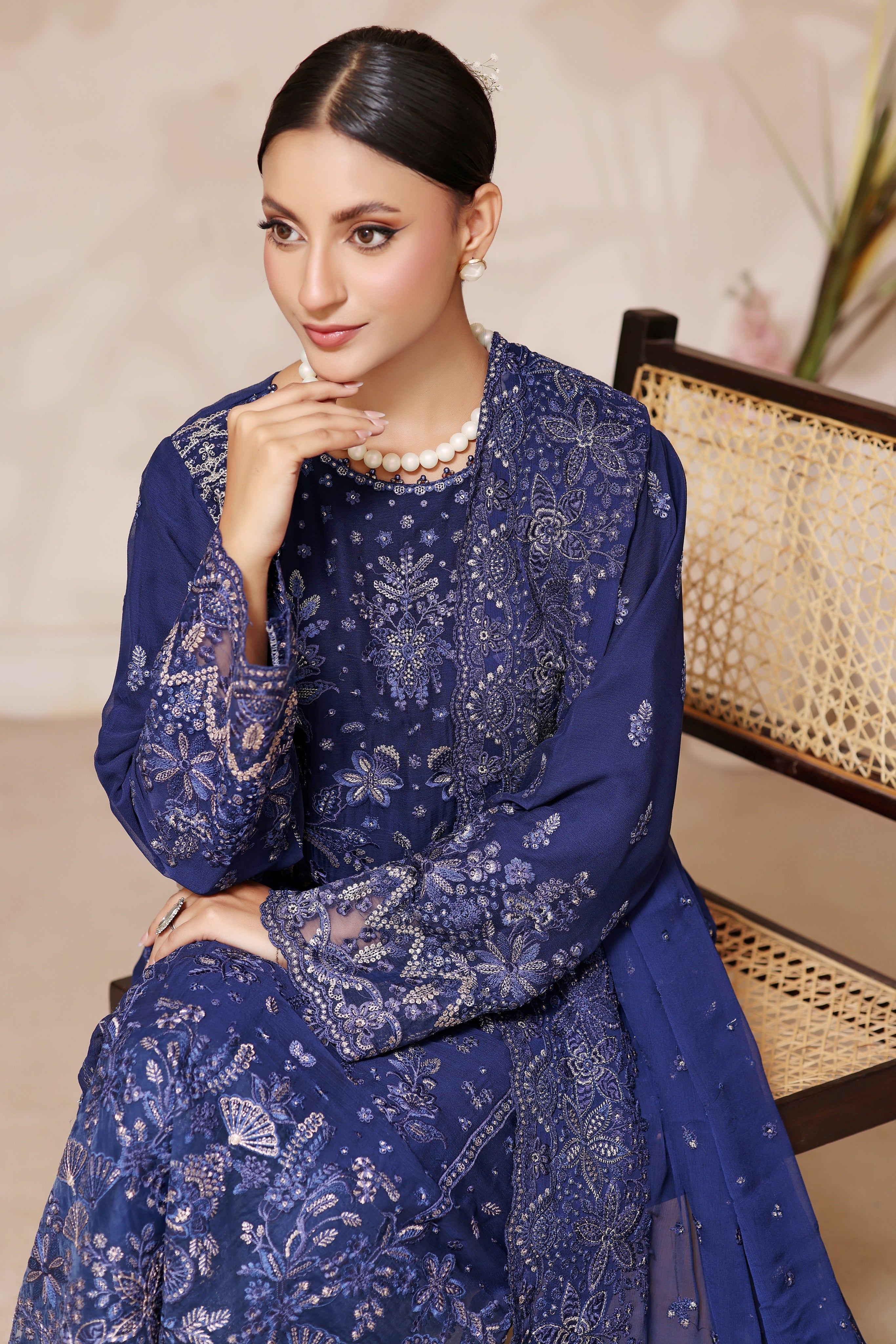 Fiza By Dressline Semi Stitched 3 Piece Chiffon Formals Collection'2025-fiza-semi-stitched-royal-sapphire