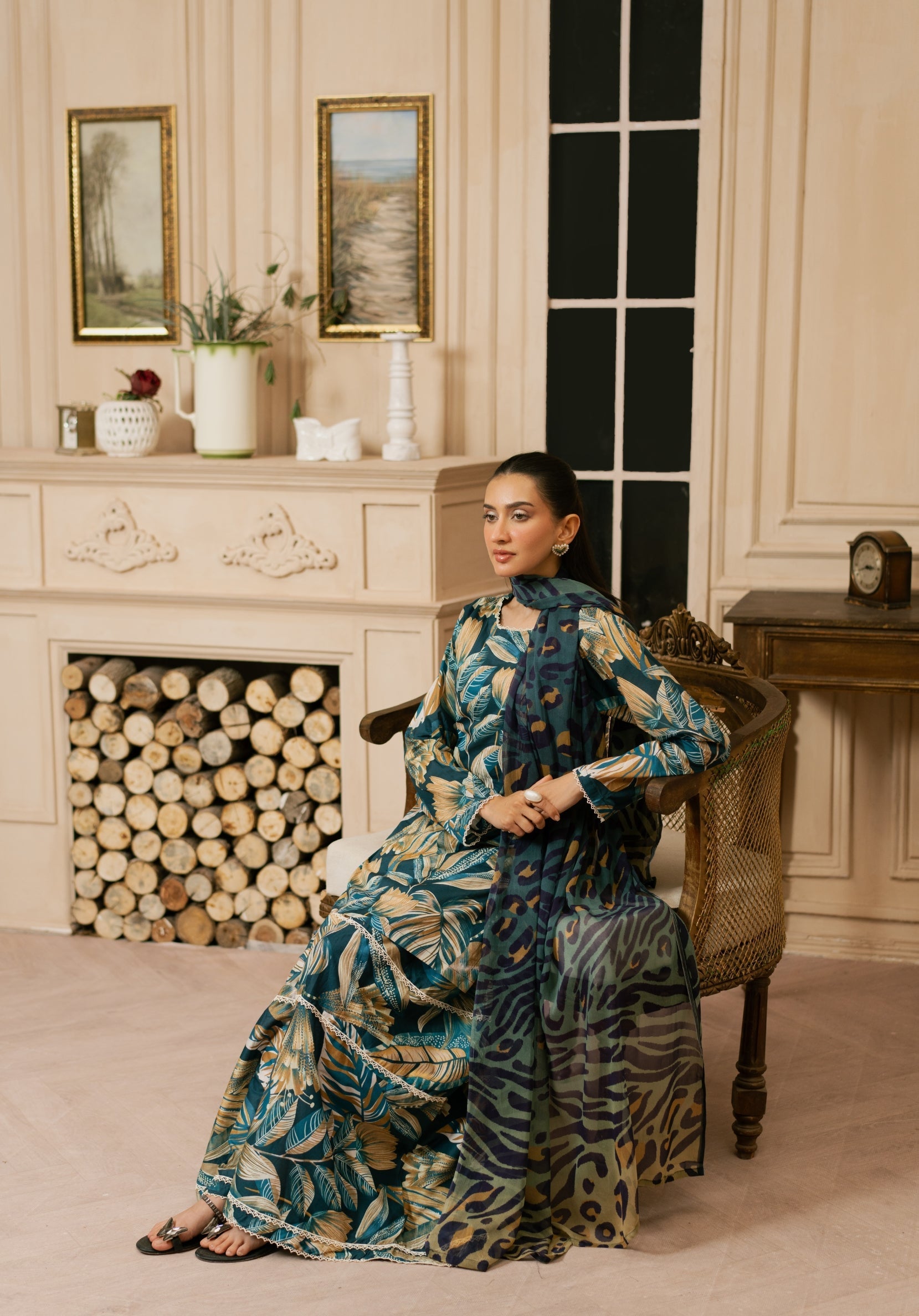 The article includes:Unstitched: Digital Printed Shirt (3 yards)Digital Printed Trouser (2.5 yards)Digital Printed Chiffon Dupatta (2.5 yards)Fabric Type: LawnDisclaimer: Actual product color may vary slightly from the image.