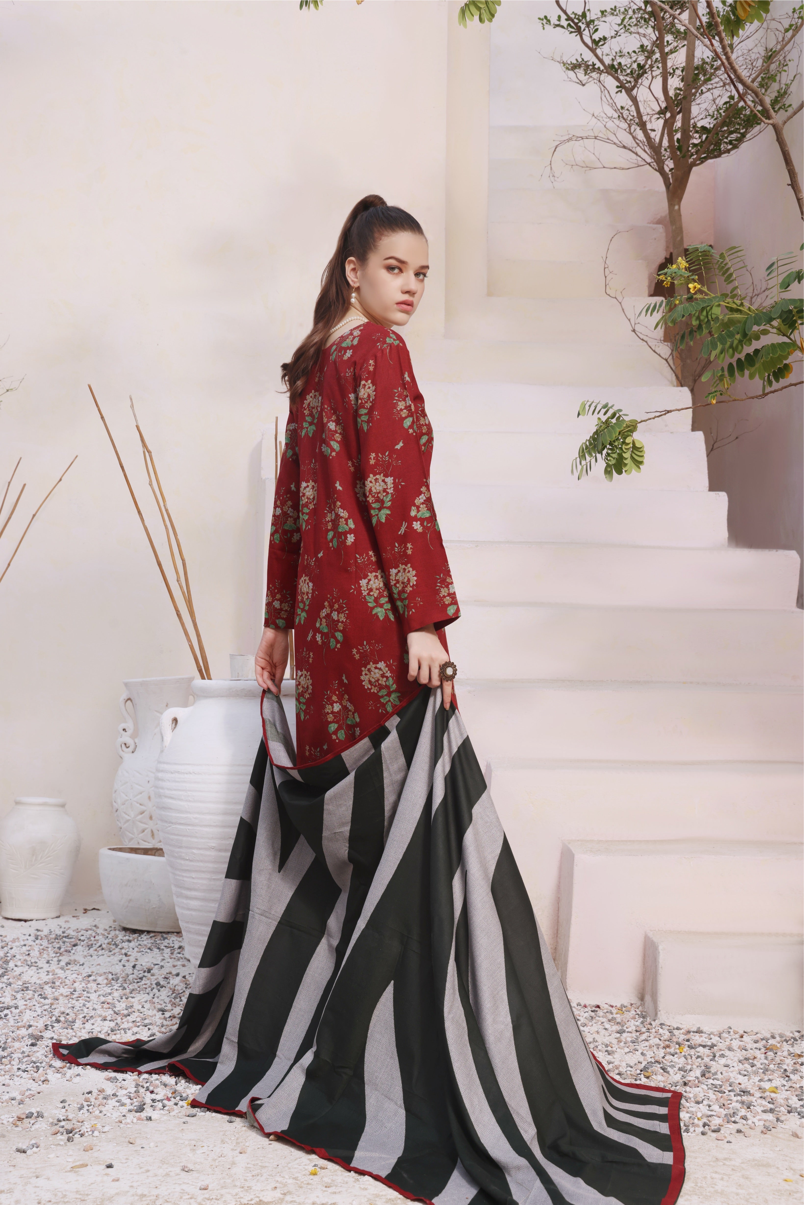 Feathers Unstitched 3 Piece Winter Collection-GLEAMING RUBY-FT295