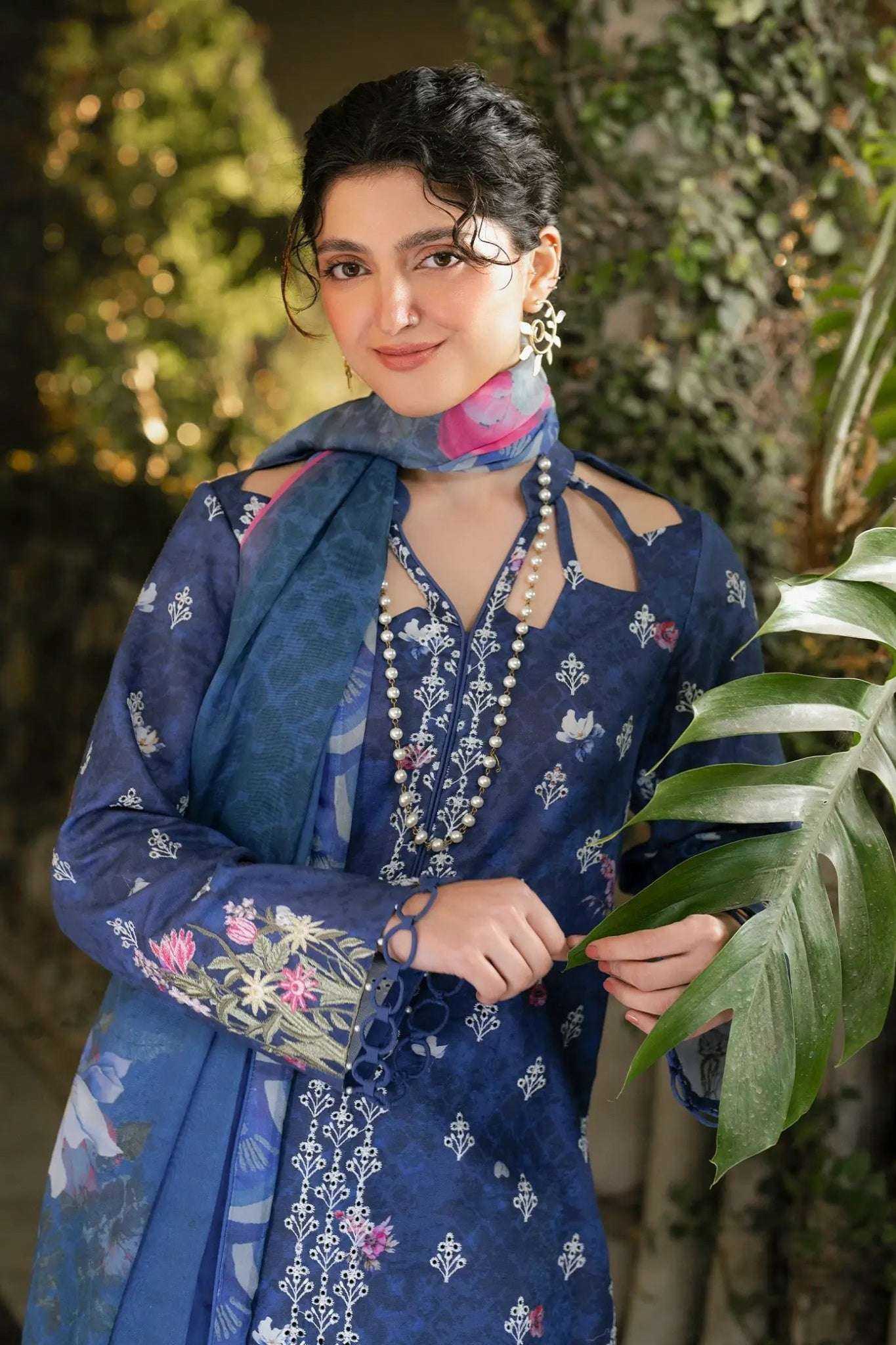 - Chikankari sleeves on digital printed lawn.