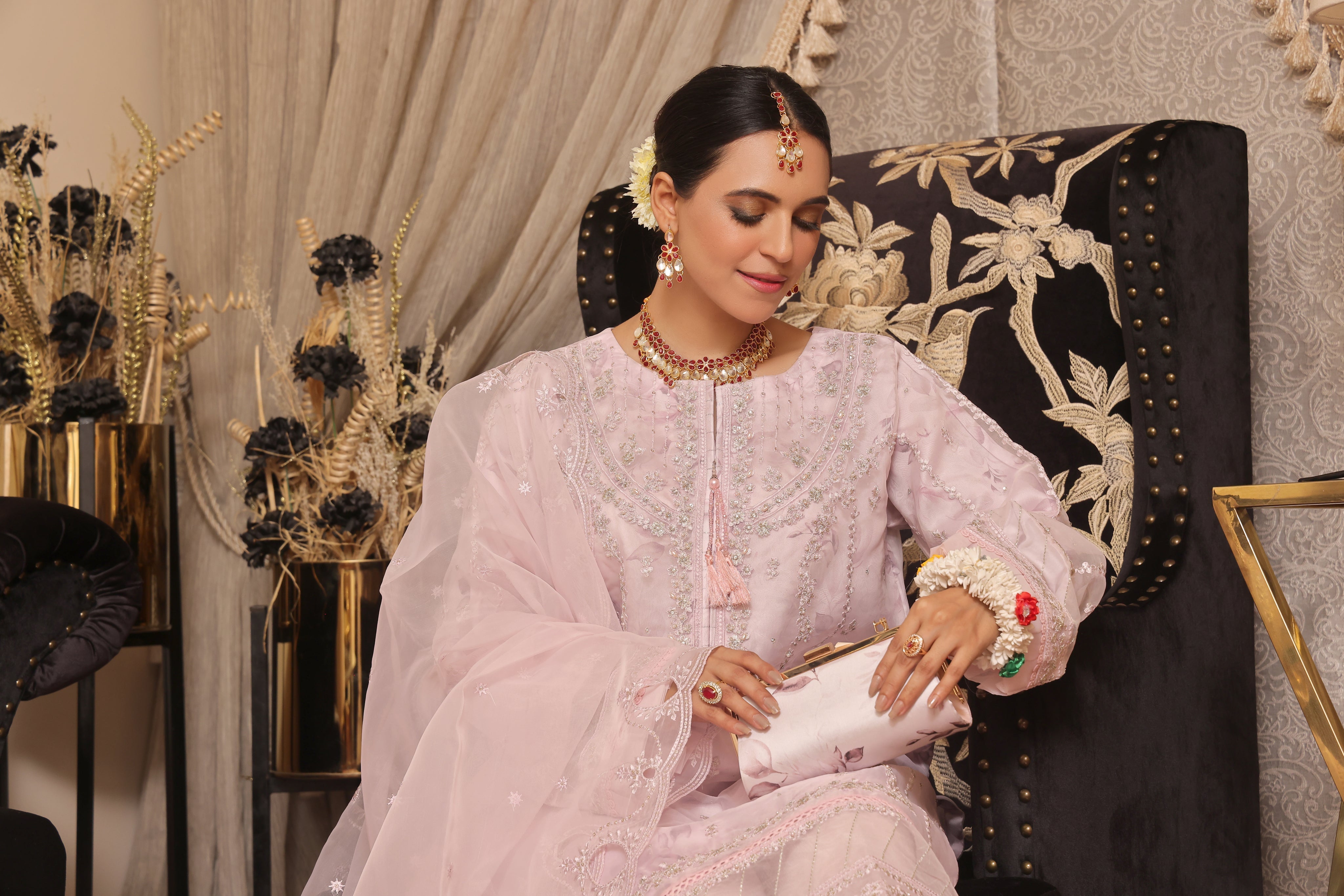 Haleema By Dressline Semi Stitched 3 Piece Organza Formals Collection'2025-haleema-L-semi-Stitched-pink