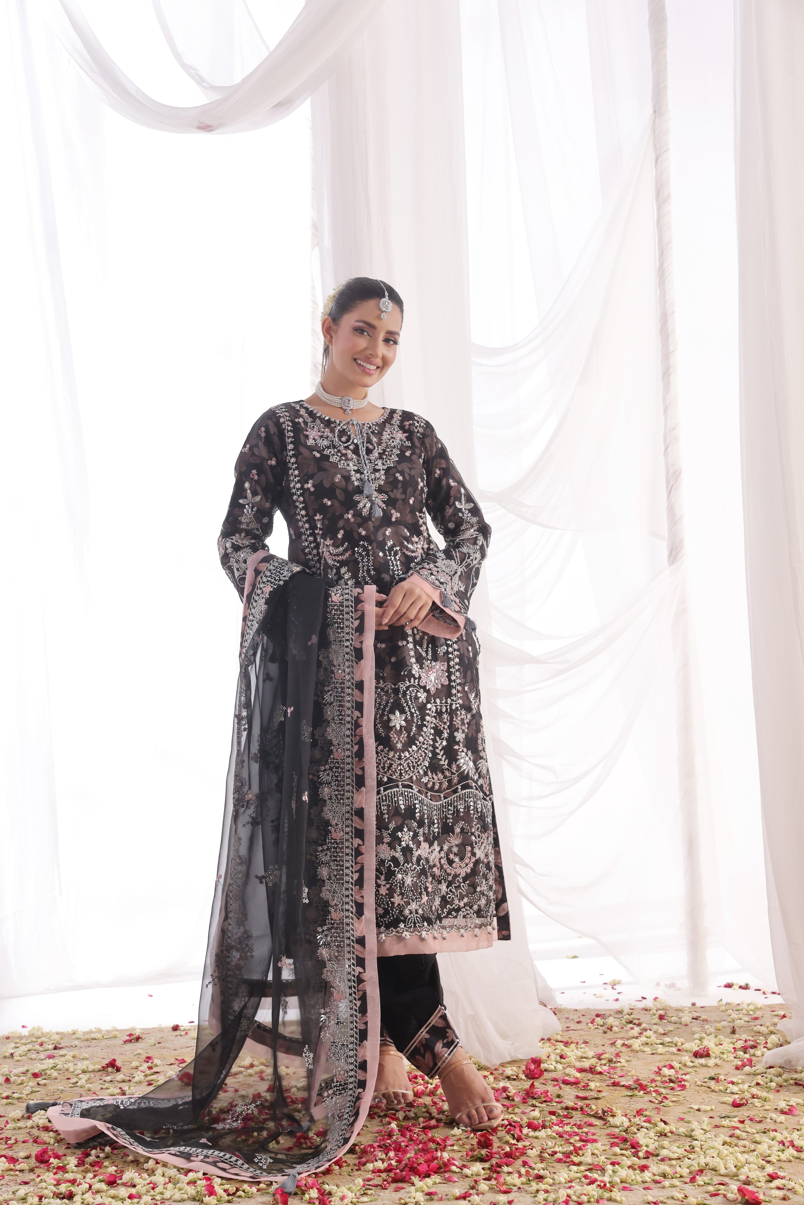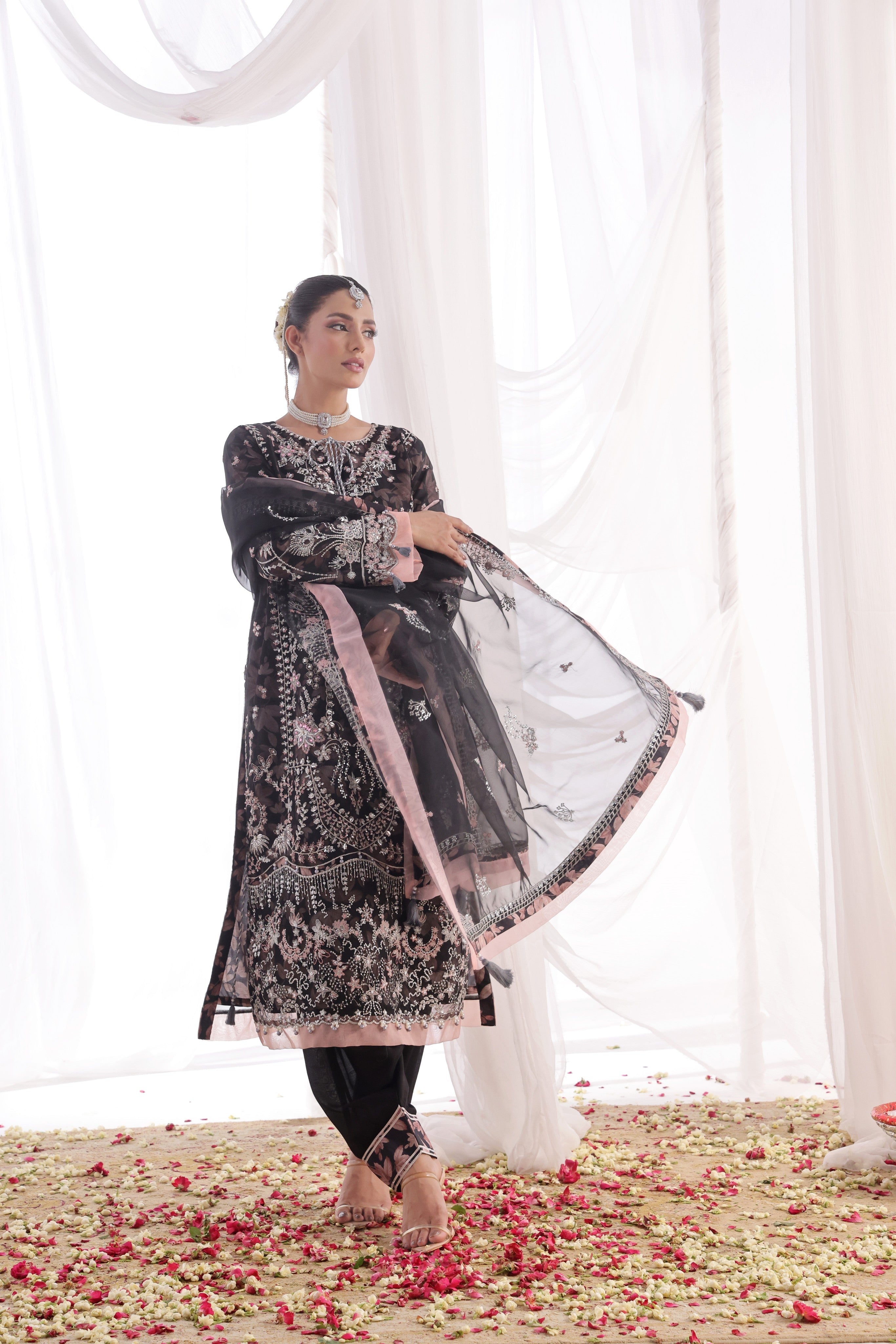 • Dupatta: Elegantly embroidered organza dupatta that adds a soft, luxurious finish to the ensemble.
