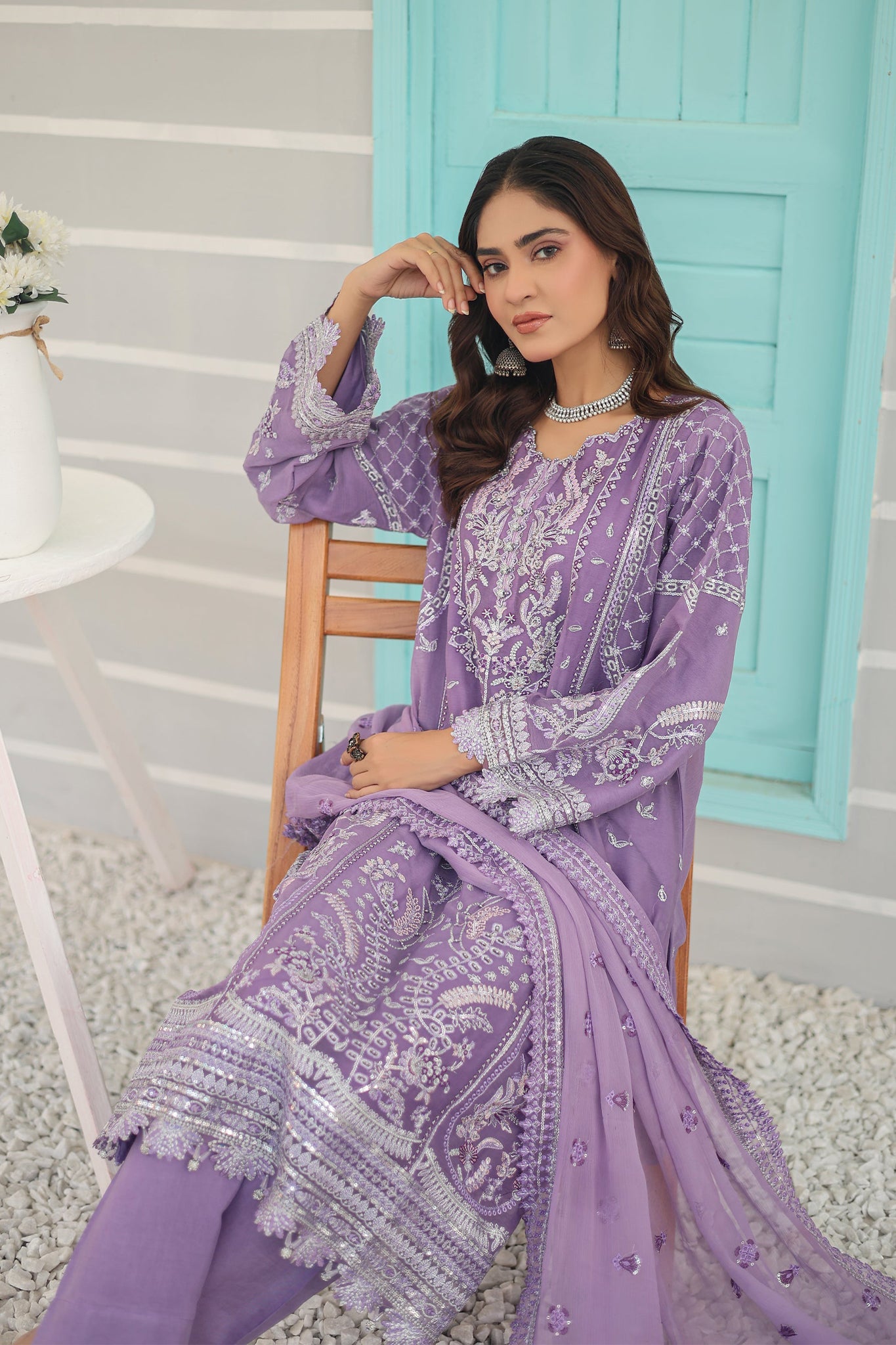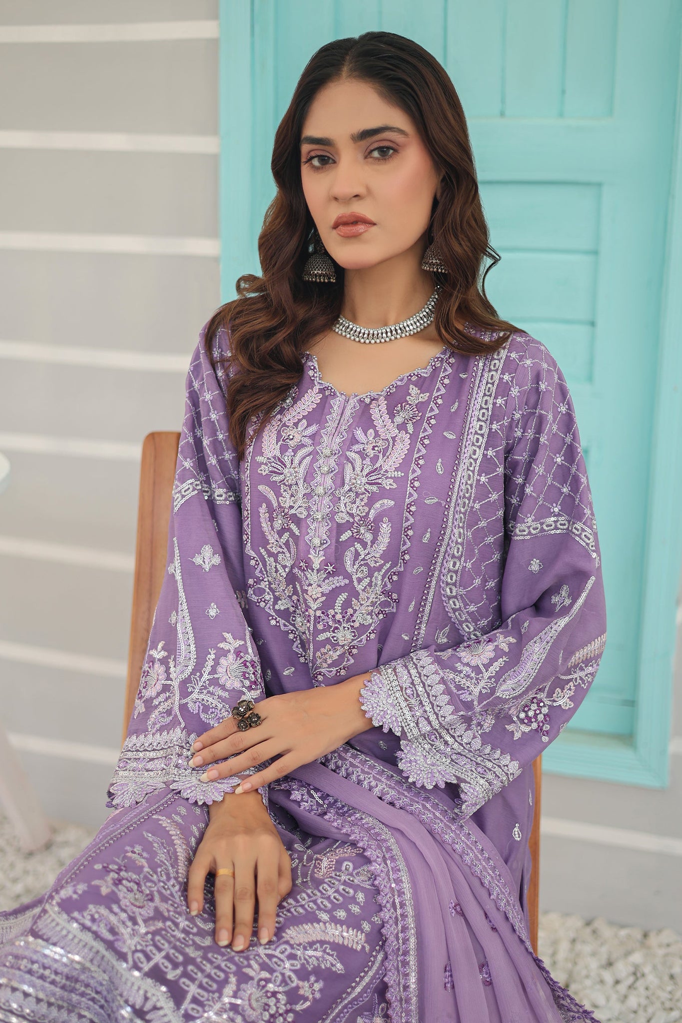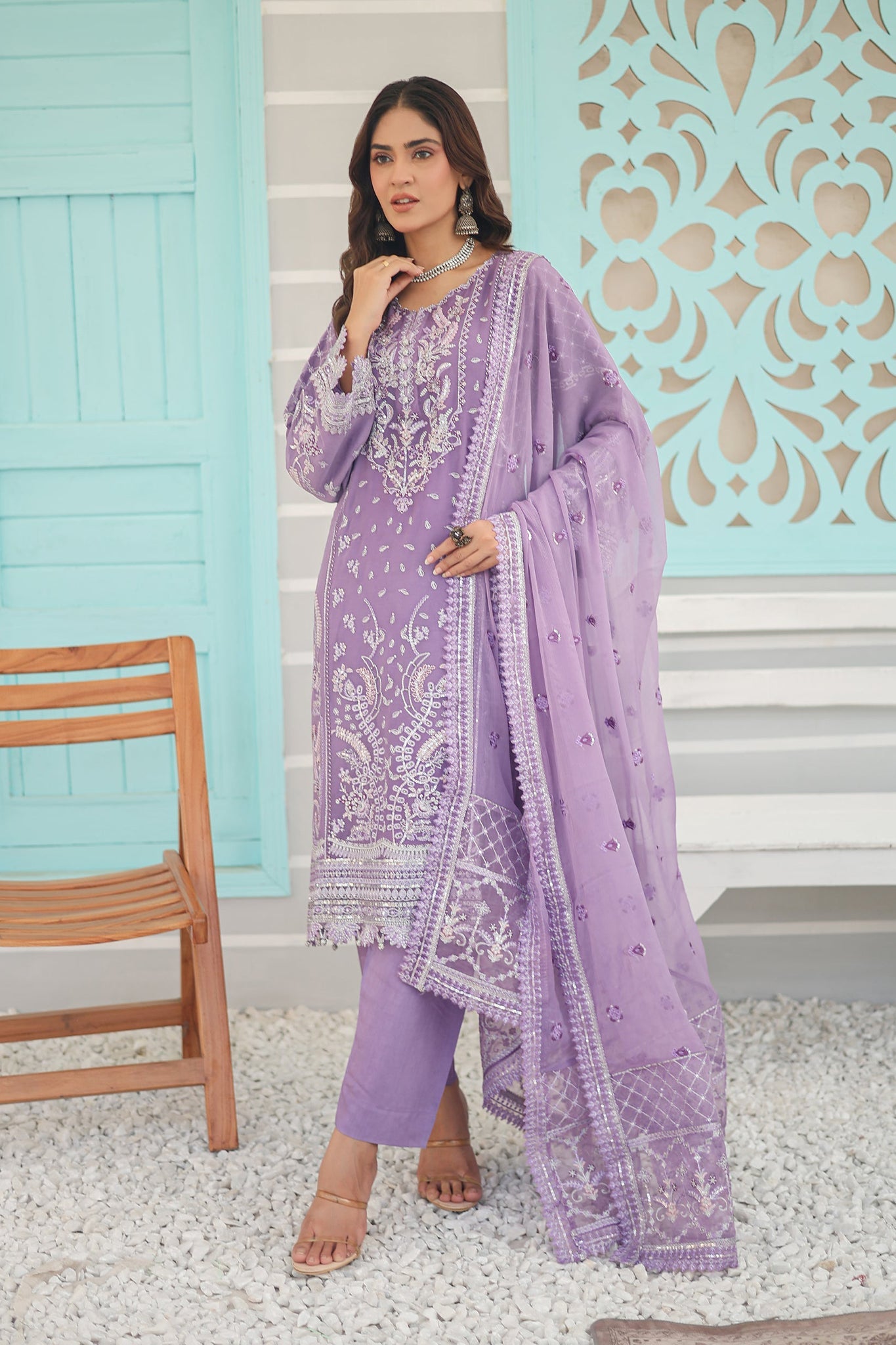 Inara By Azmeerah Official Semi Stitched 3 Piece Chiffon Edit Collection'2024-01-Peri Winkle