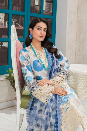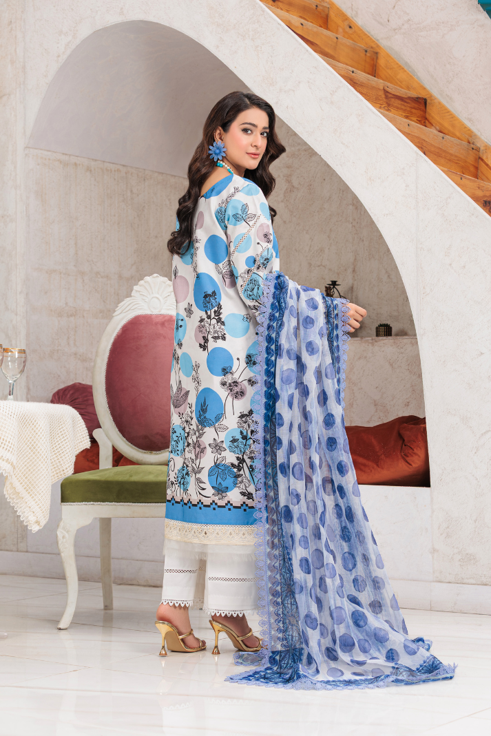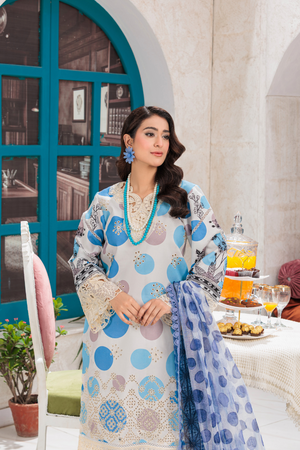 Soft as petals, bright as moonlight Ivory Bloom 3-piece embroidered lawn set brings timeless grace to your wardrobe.