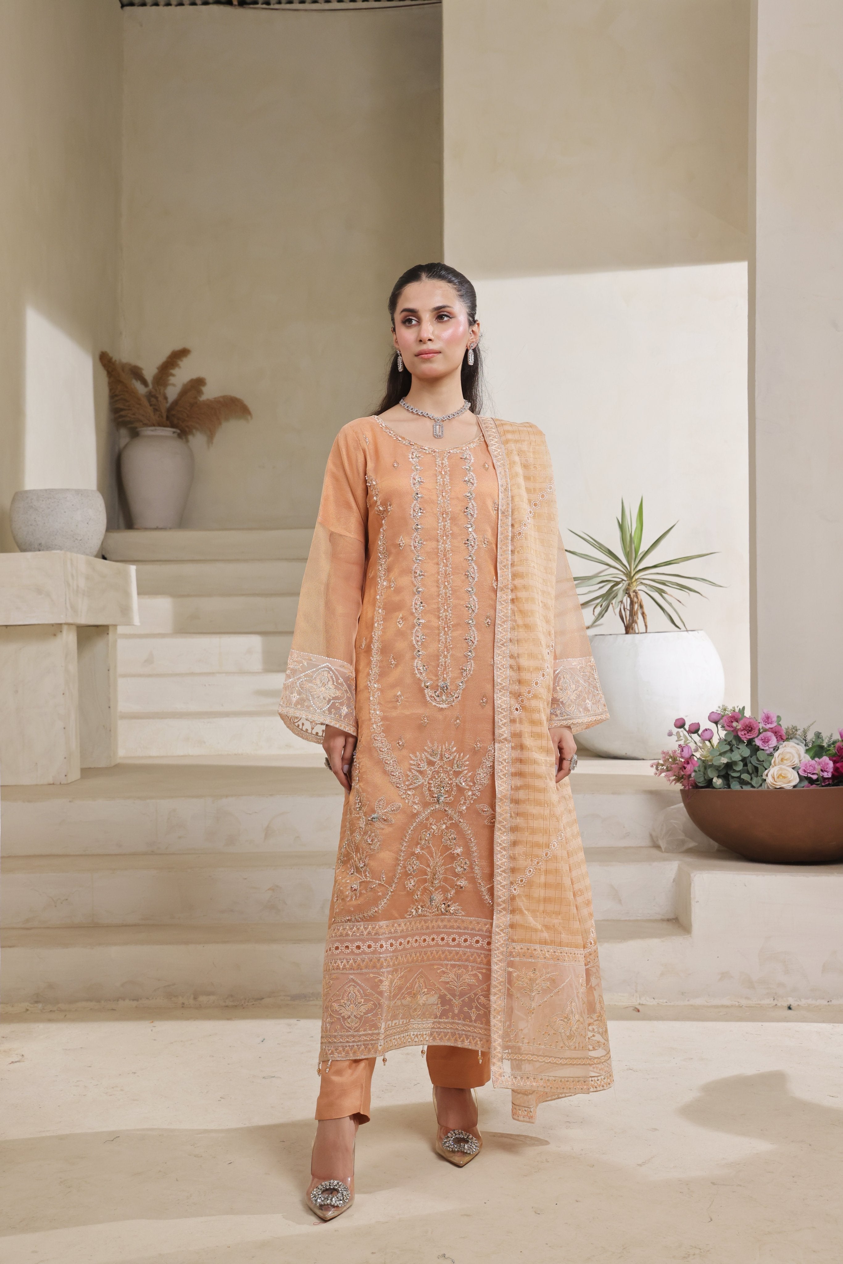 Elevate your style this season with JASMINE, a statement piece from our Semi-Stitched Organza Khaadi Net Collection – a perfect blend of tradition, texture, and modern aesthetics.