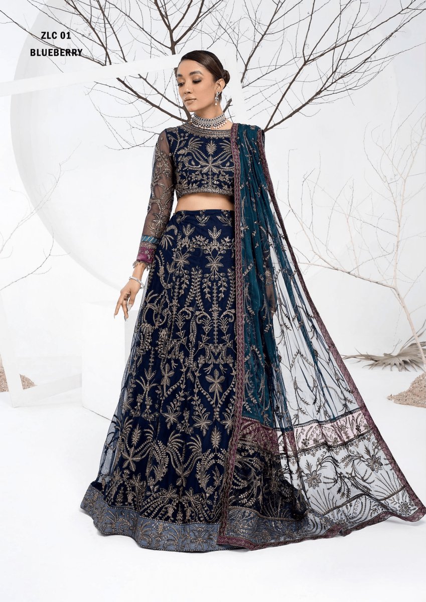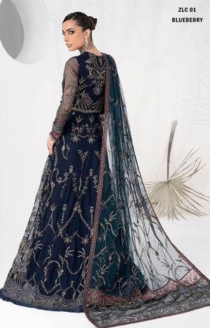 LA CELESTE By Zarif 3 Piece Unstitched Suits ZLC 01 BLUEBERRY - Luxury Formals Collection