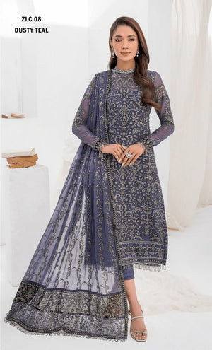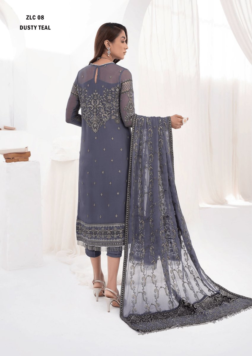 LA CELESTE By Zarif 3 Piece Unstitched Suits ZLC 08 DUSTY TEAL-Luxury Formals Collection
