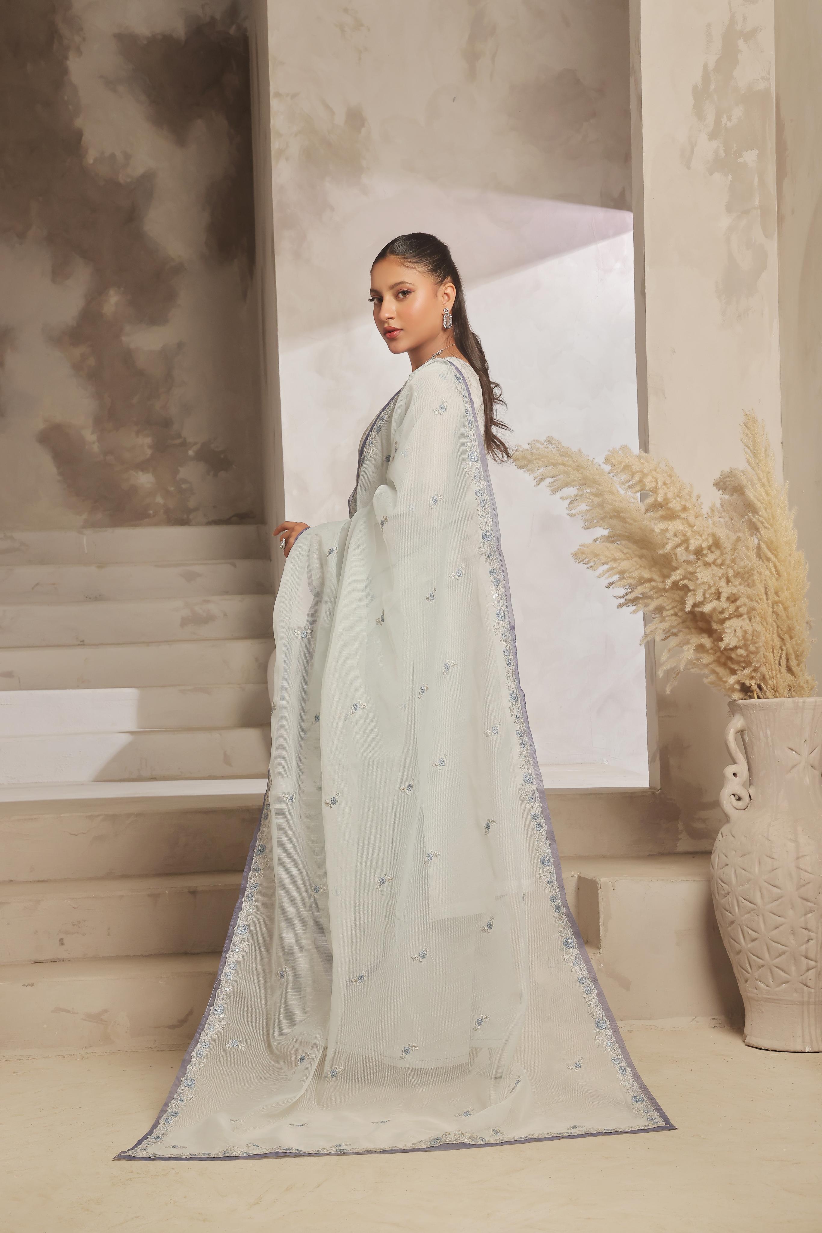Premium Embroidered Chikan-kari Doriya Lawn Front – Adorned with intricate Chikan-kari embroidery on soft Doriya Lawn, adding a touch of grace and tradition.