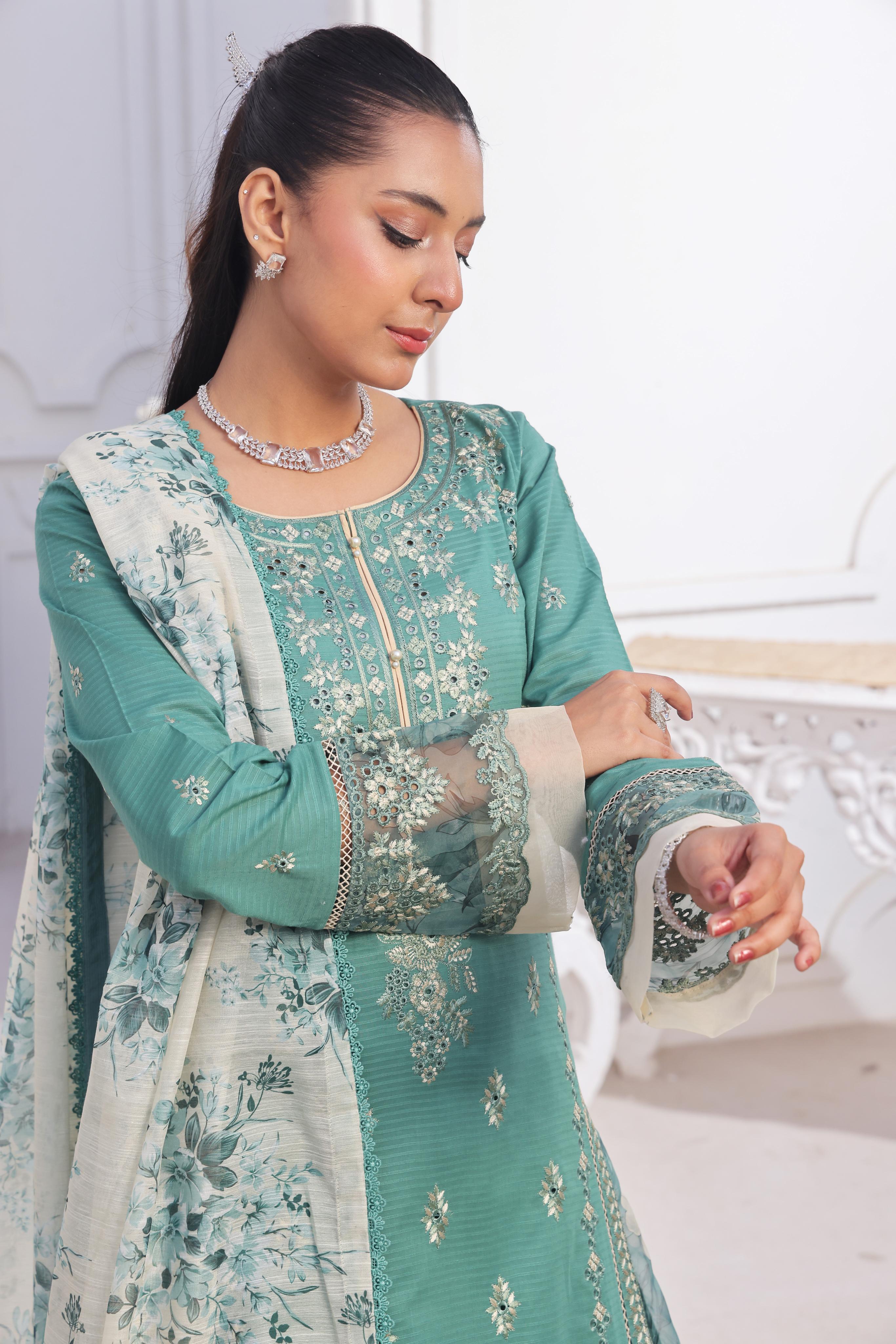 Celebrate Eid 2025 in timeless sophistication with JAZMINE, a masterpiece designed for those who appreciate luxury, elegance, and intricate craftsmanship. This exquisite ensemble is perfect for festive gatherings, ensuring you make a lasting impression with its regal charm and breathtaking details.