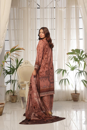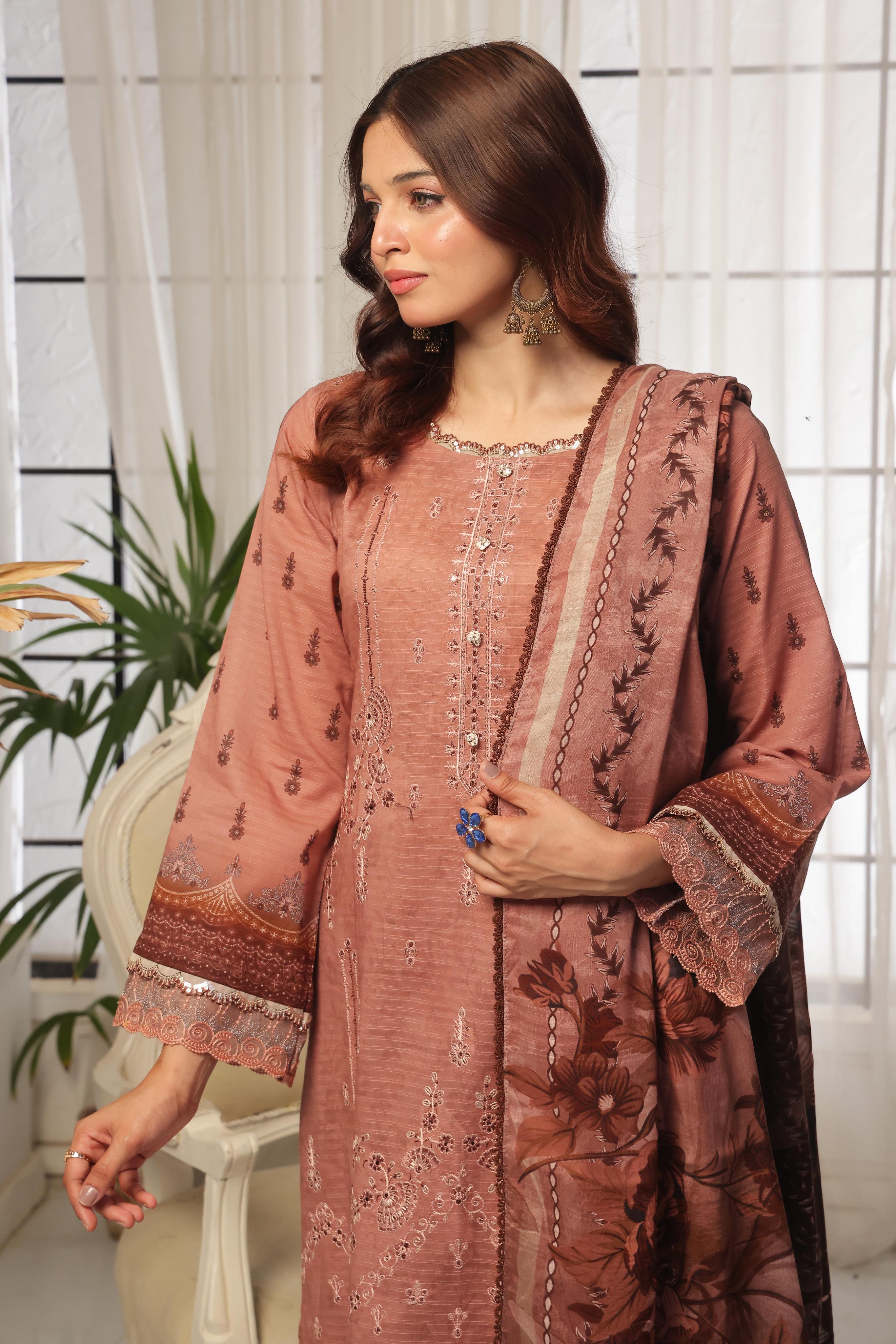 Complementing the shirt, the unstitched trouser features coordinated digital prints and fine embroidery, offering a graceful and complete look.