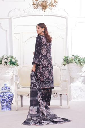 Complementing the shirt, the unstitched trouser features coordinated digital prints and fine embroidery, offering a graceful and complete look.