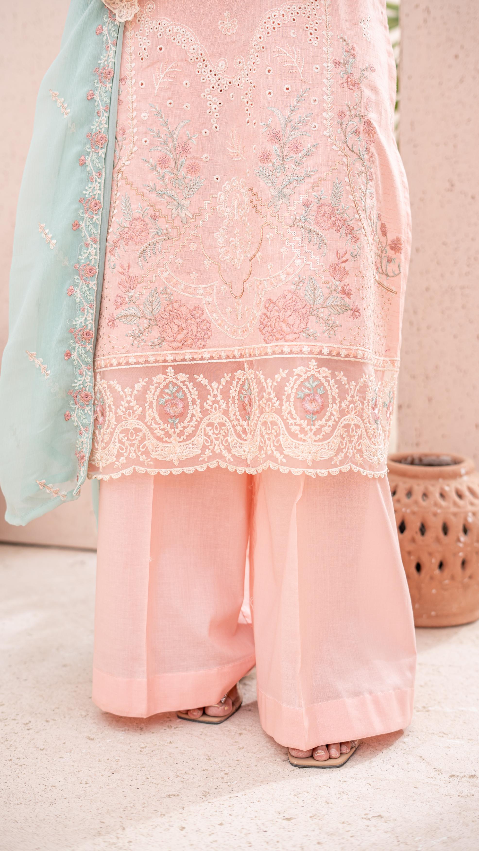 Sleeves: Premium Embroidered Chikan-kari Jacquard Lawn – Delicate embroidery on the sleeves, adding a touch of regal beauty.