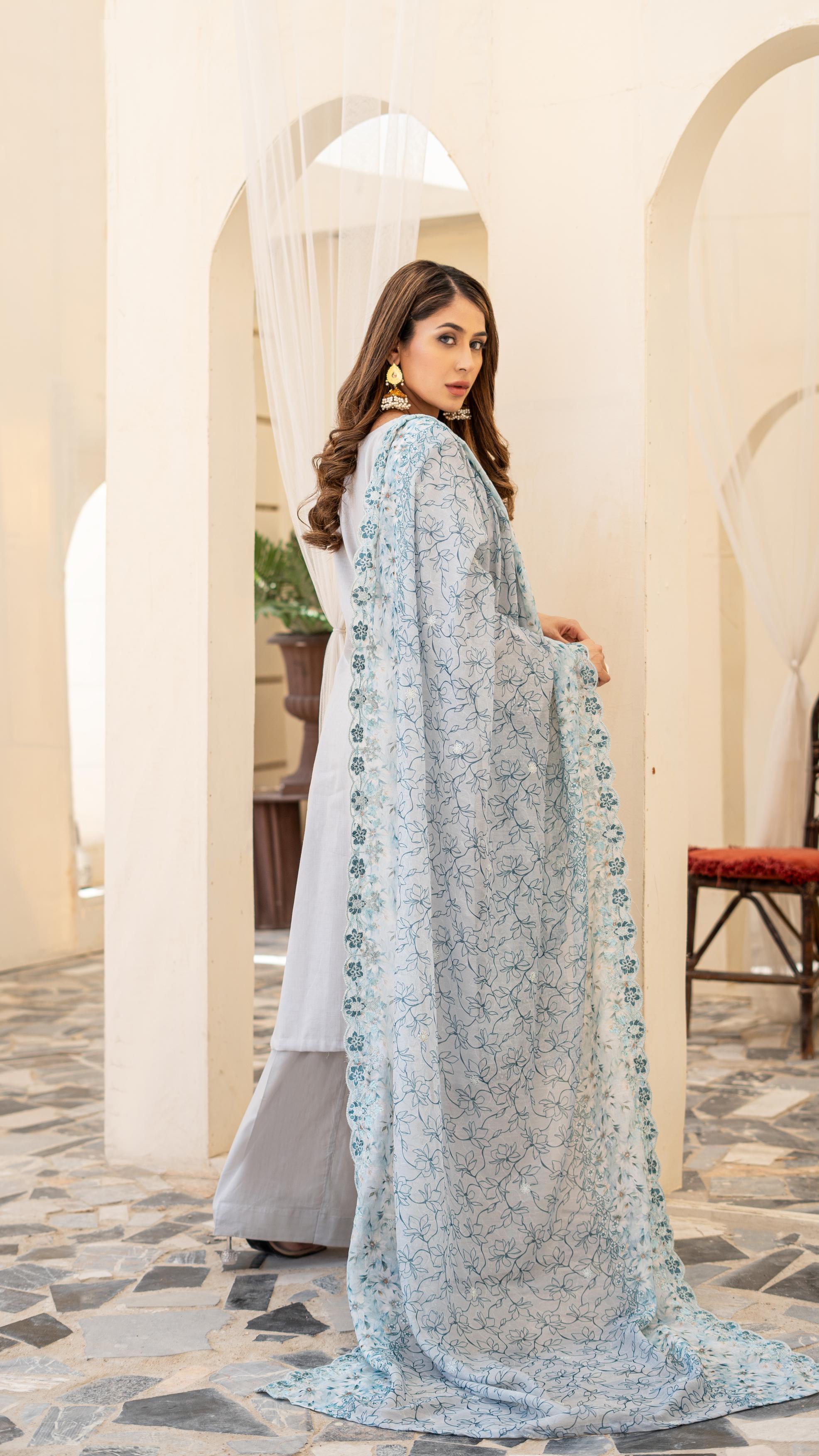 Sleeves: Premium Embroidered Chikan-kari Jacquard Lawn – Delicate embroidery on the sleeves, adding a touch of regal beauty.