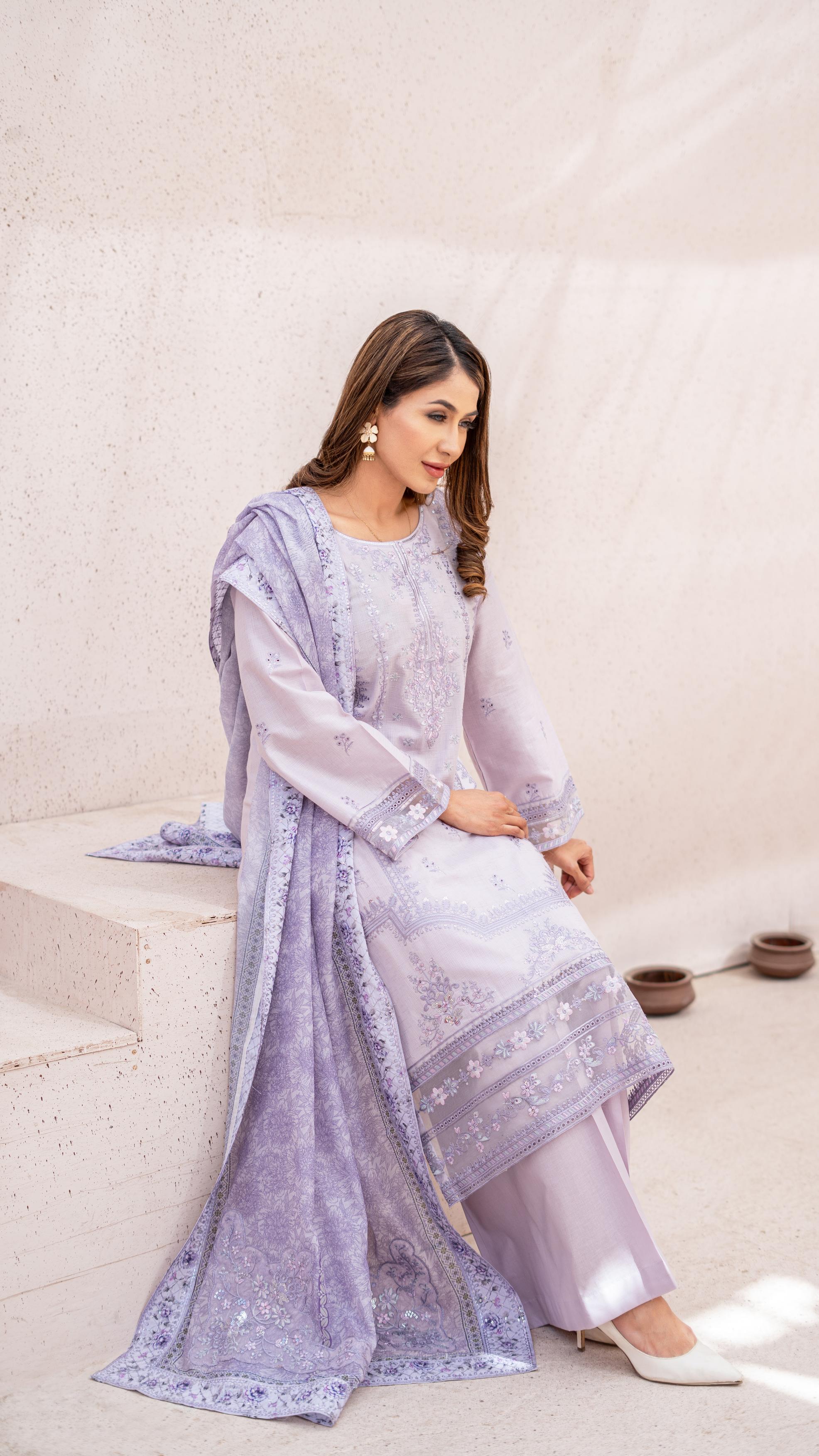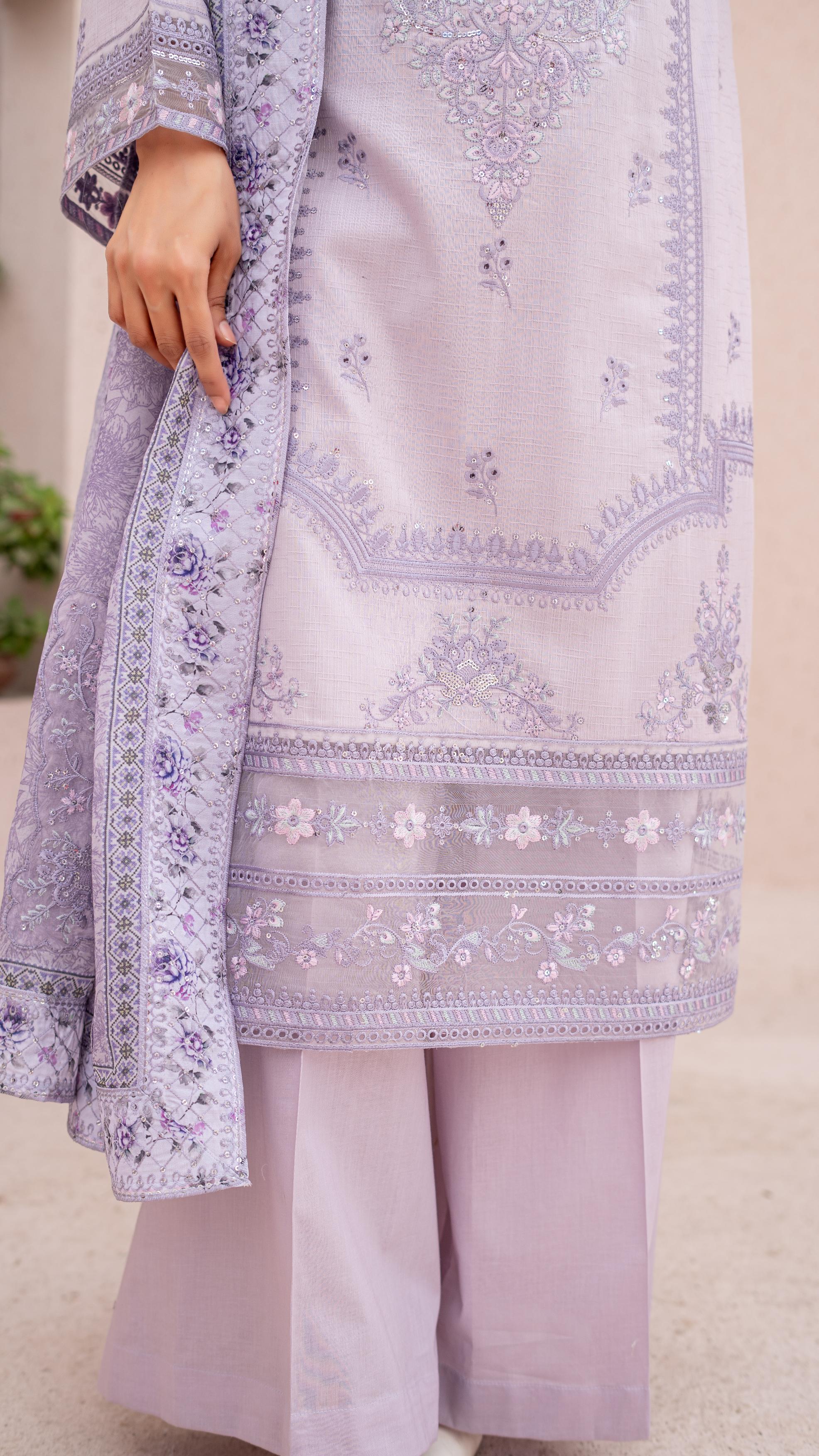 Back: Plain Jacquard Lawn – A smooth, breathable, and elegant finish that complements the embroidered front.