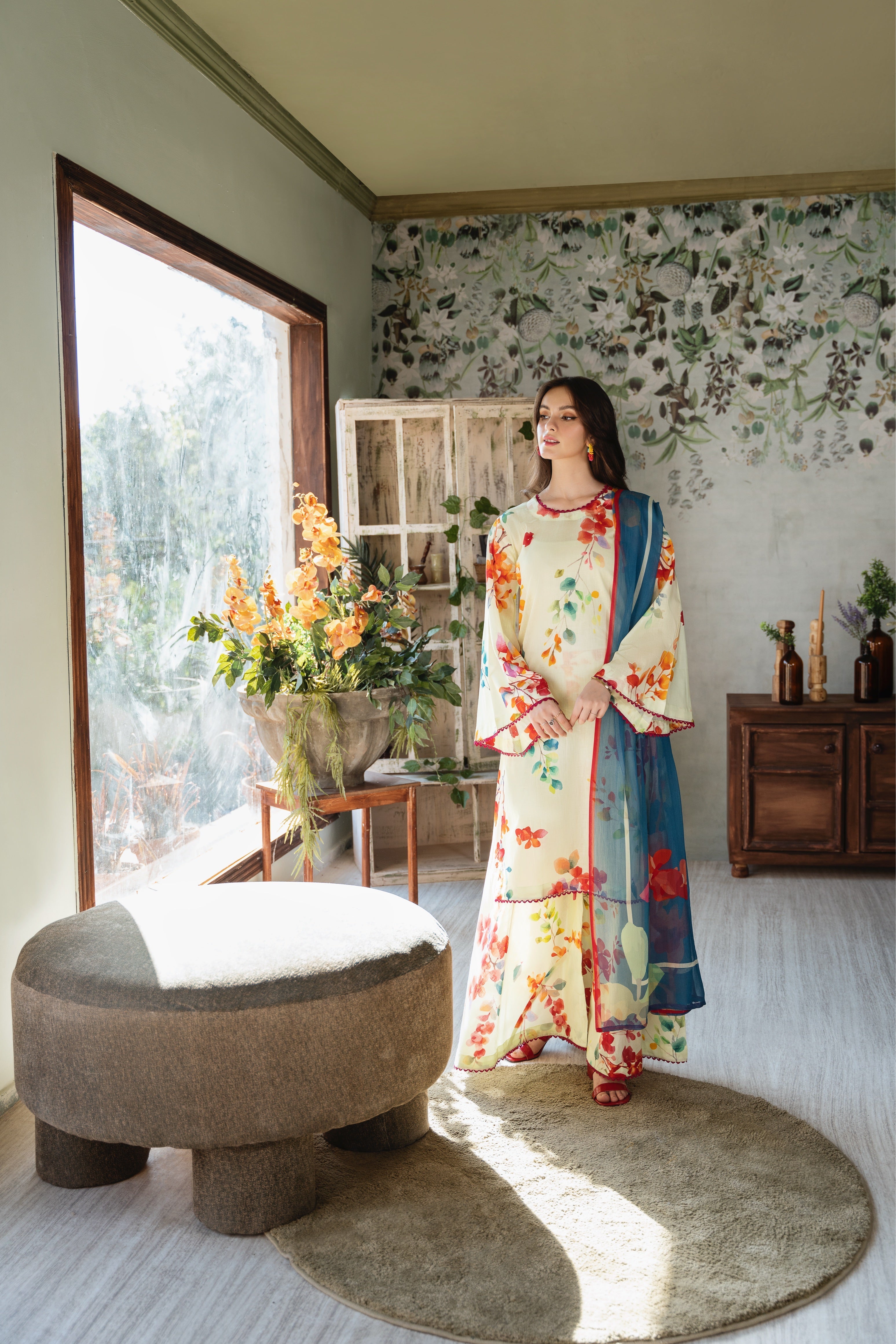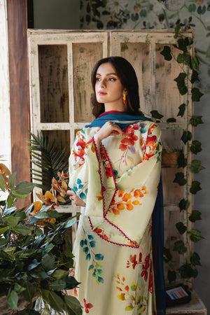Experience ExquisitelyThis dress is for a new go this summer.The article includes:Unstitched 3PCDigital Printed Shirt (3 yards)Digital Printed Trouser (2.5 yards)Digital Printed Chiffon Dupatta (2.5 yards)Fabric Type: LawnNote: To get the same stitching style, please purchase our two dresses.Disclaimer: Actual product color may vary slightly from the image.