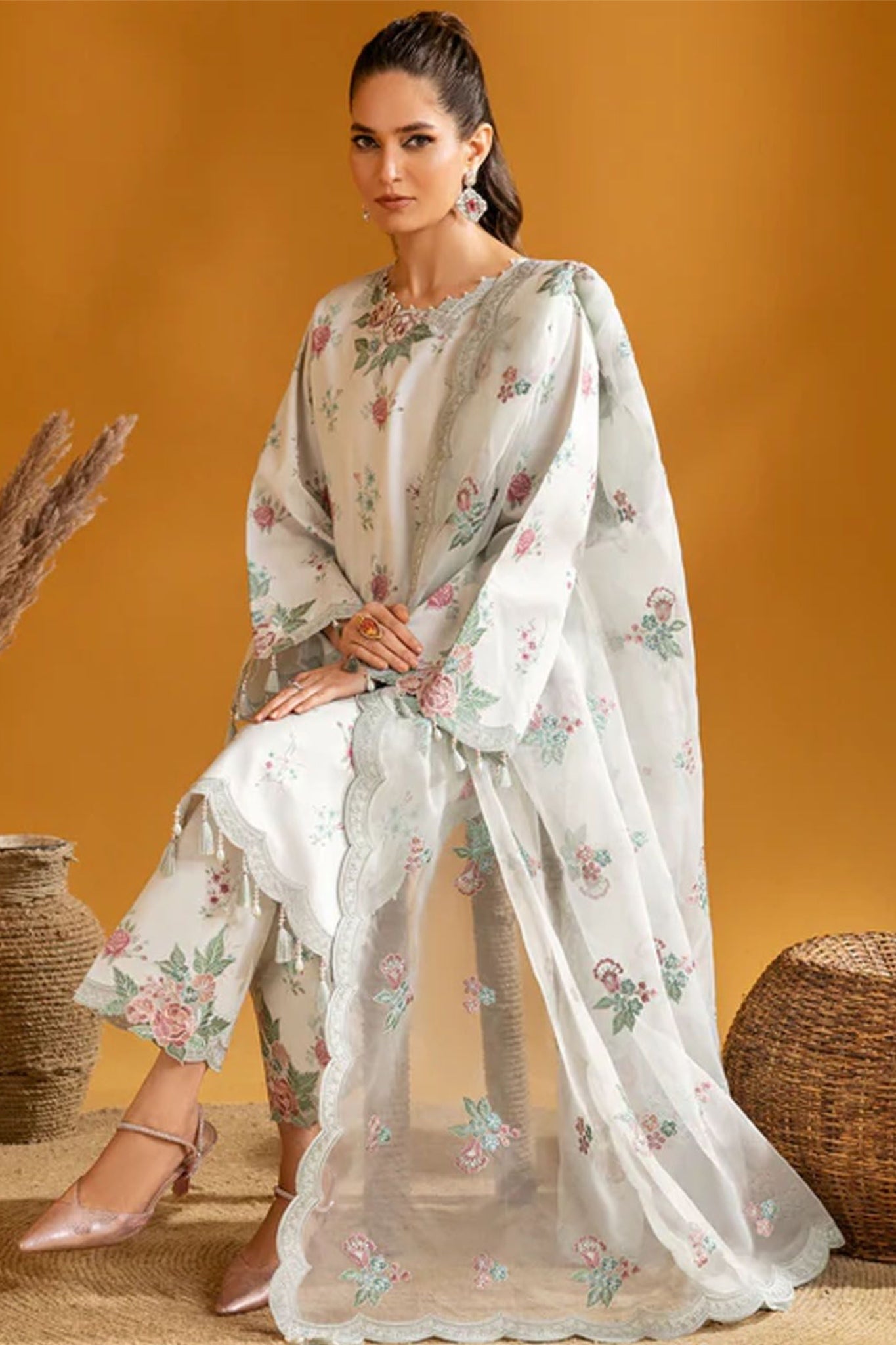 • Embroidered Chiffon Dupatta