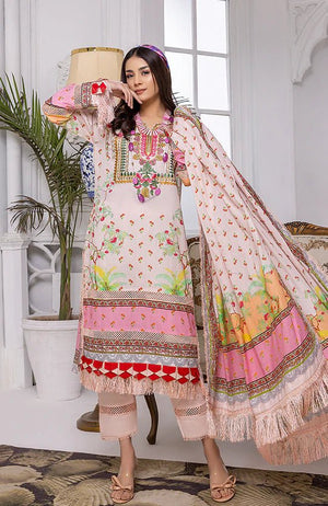 3 Piece Unstitched Embroidered Digital Printed Lawn Dress (MEC-22-06)