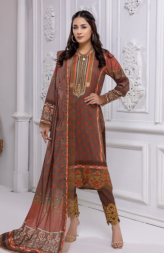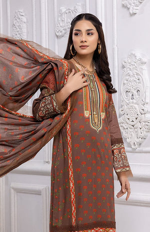 3 Piece Unstitched Embroidered Digital Printed Lawn Dress (MEC-22-13)