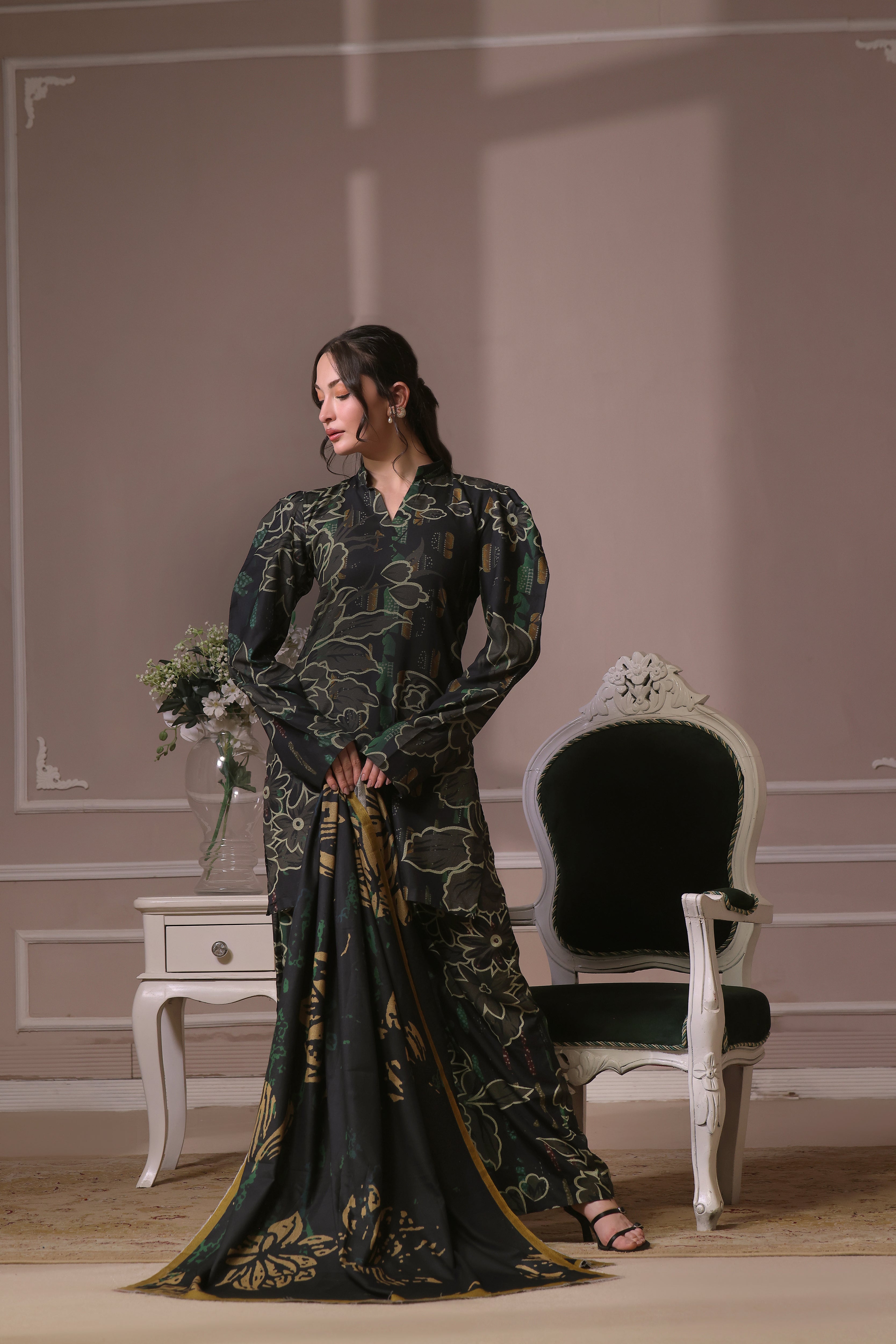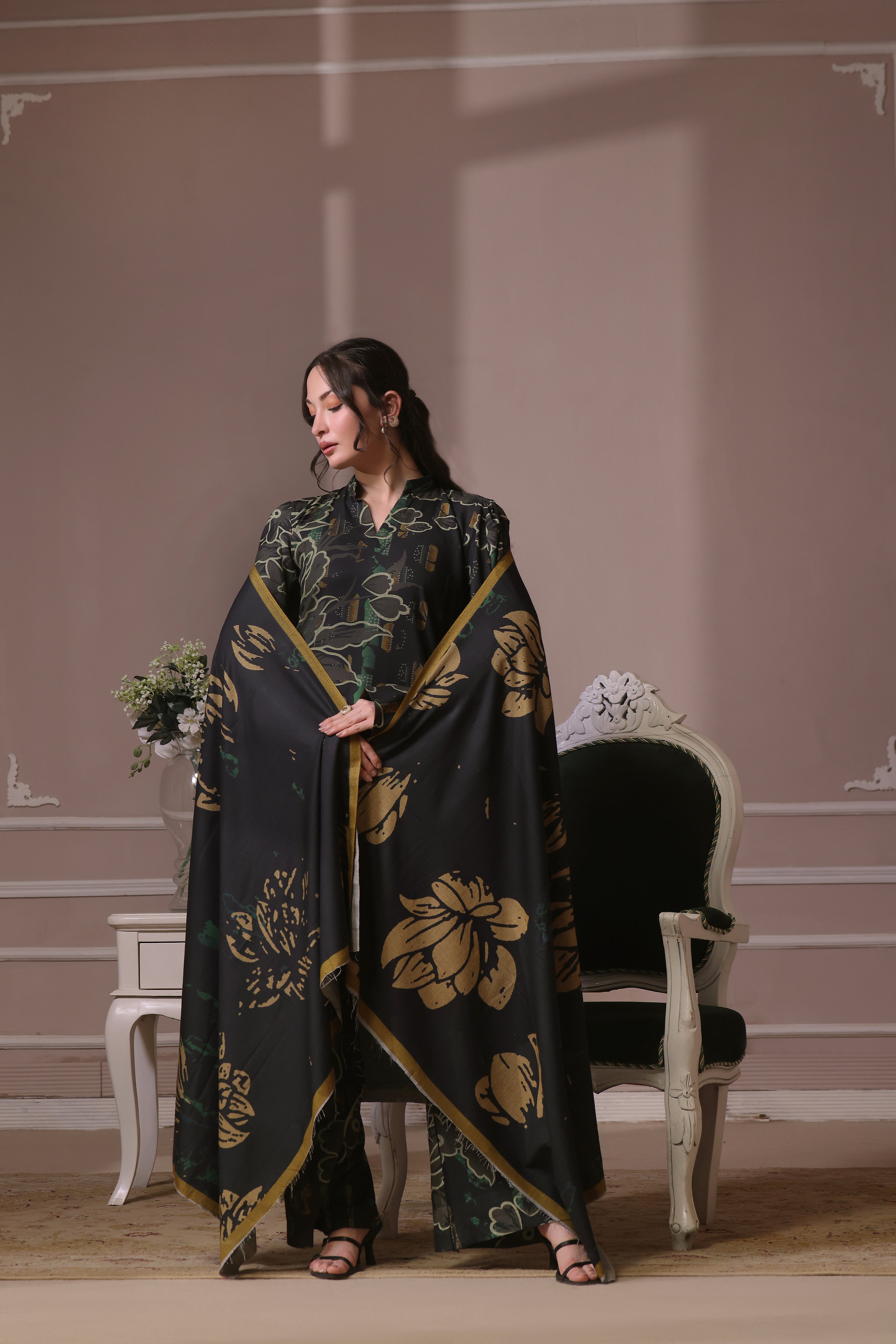 Experience an exquisitely (Unstitched) Digital Printed Dhanak shawl with a digitally printed Dhanak suit for a new go this winter season.The article includes:Digital Printed Dhanak Shawl: 2.5 yardsDigital Printed Dhanak Shirt & Trouser Fabric: 5.4 yardsDISCLAIMER: COLORS MIGHT APPEAR SLIGHTLY DIFFERENT DUE TO THE PHOTOGRAPHIC/LIGHTING EQUIPMENT USED. SOME ACCESSORIES/EMBELLISHMENTS USED ARE ONLY FOR SHOOT PURPOSES AND NOT PART OF THE ACTUAL SUIT.