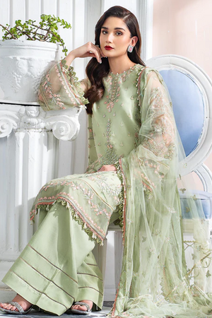 Additional Description:Embroidered Front On Net Embroidered Back Side Extention On Net Embroidered Front Back Border On Net Embroidered Sleeves On Net Embroidered Sleeves Border On Net Embroidered Dupatta On Net Embroidered Dupatta Pallu On Net Trouser Raw Silk