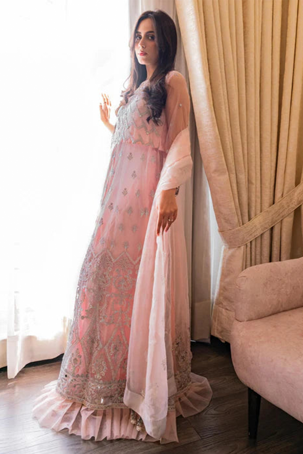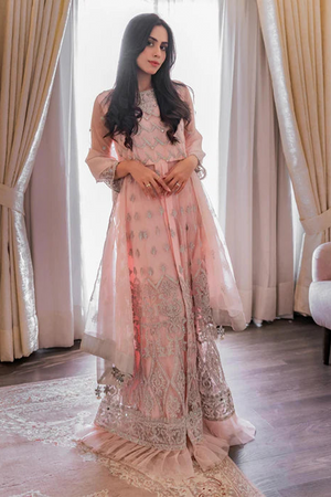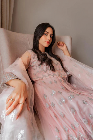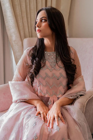 Additional Description:Hand Embellished Front Bodice On Net 0.66 Meter Hand Embellished Back Bodice On Net 0.66 Meter Hand Embellished Neck On Organza Embroidered Sleeve On Net 0.66 Meter Embroidered front Kali On Net 06 Piecs Embroidered back kali On Net 06 Piecs Embroidered Front Boder On Organza 2 Meter Embroidered Back Boder On Organza 2 Meter Foil Print Dupatta On Organza 2.5 Meter Trouser Under Shit Raw Silk 3.65 Meter