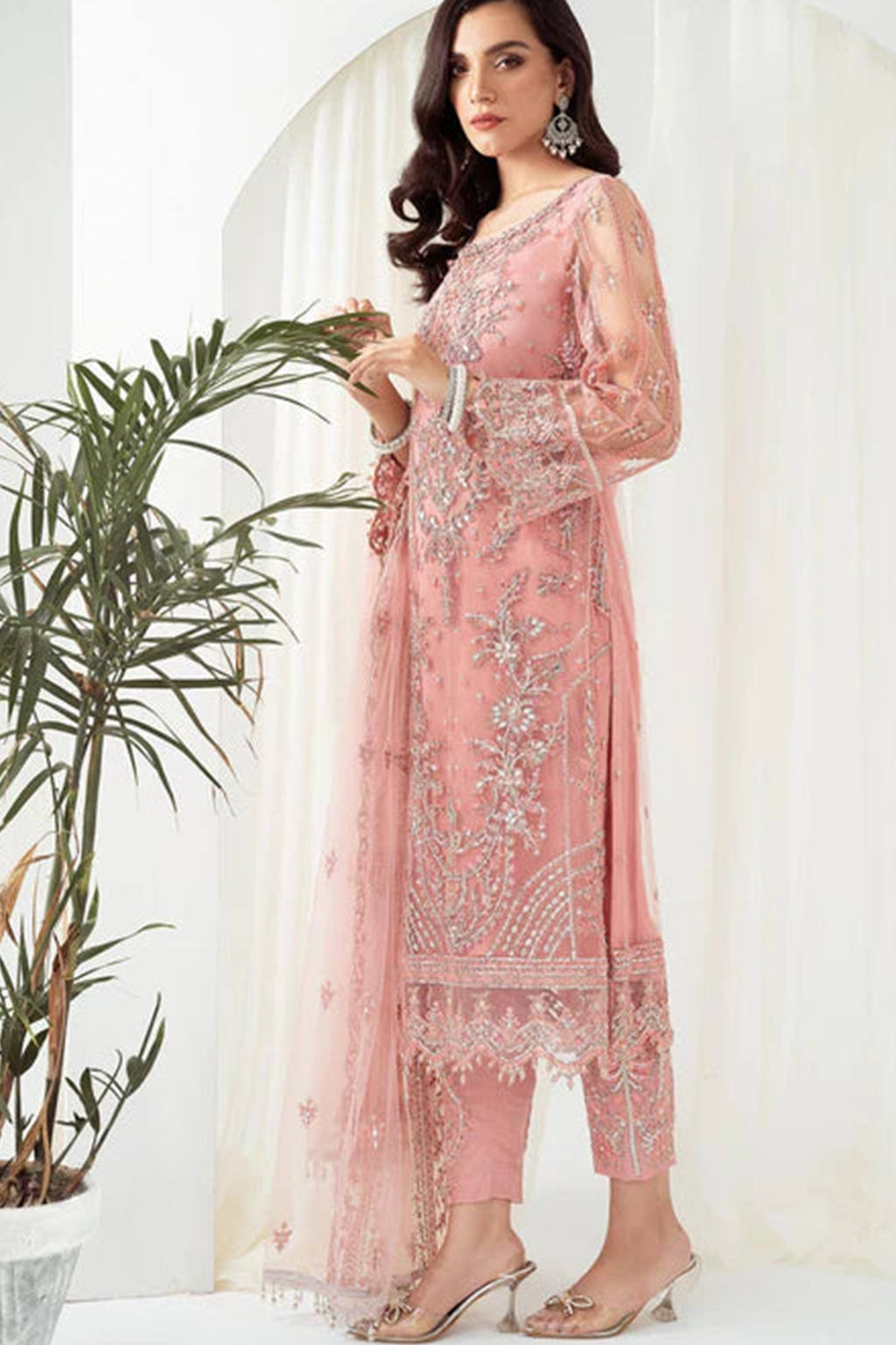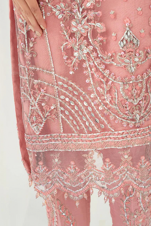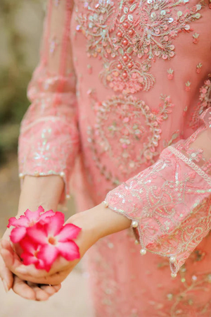 Additional Description:Hand Embellished Front On Net 0.66 Meter Embroidered Back Side Extensions On Net 1.32 Meter Embroidered Sleeves On Net 0.66 Meter Embroidered Sleeves Border On Raw Silk 1 meter Embroidered Front Boder On Raw Silk 1 meter Embroidered Back Boder On Raw Silk 1 meter Embroidered Dupatta On Net 2.5 Meter Embroidered Trouser Motif On Organza 1 pair Under Shirt Cotton Silk 2.25 Meter Trouser Raw Silk 2.25 Meter