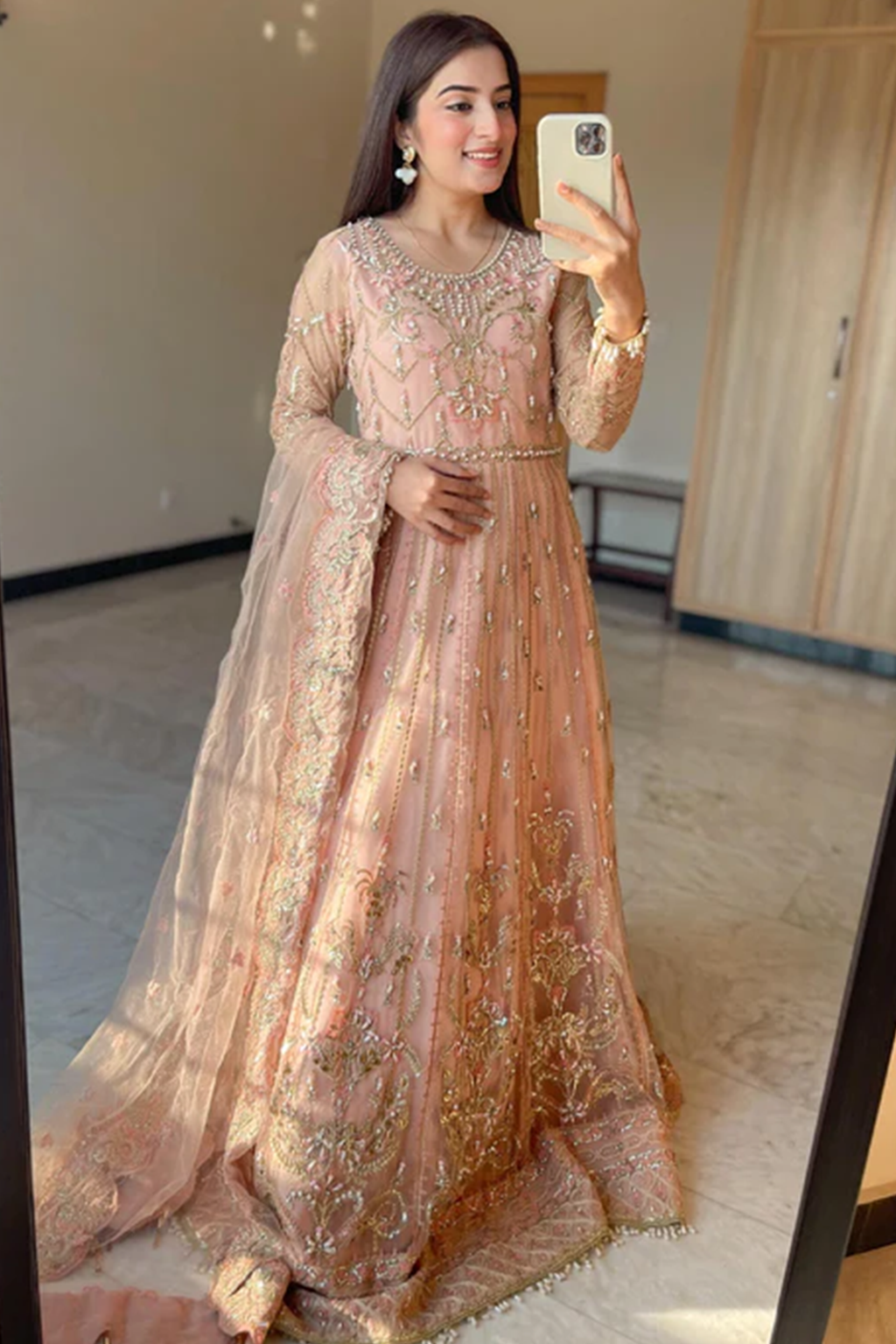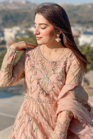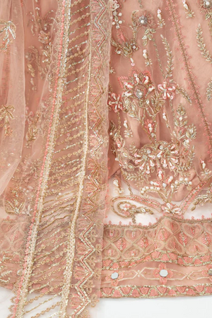 Additional Description:Hand Embellished Front Bodice On Net 0.66 Meter Embroidered Back Bodice On Net 0.66 Meter Hand Embellished Front Kali On Net 6 Pieces Embroidered Back Kali On Net 6 Pieces Embroidered Sleeves On Net 0.66 Meter Embroidered Front Boder On Organza 2 meter Embroidered Back Boder On Organza 2 meter Embroidered Dupatta On Net 2.5 Meter Trouser Under Shirt Raw Silk 3.65 Meter
