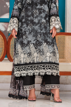 Huma Gul Unstitched 3 Piece Emb Lawn Collection'2025-Midnight Veil HG-106
