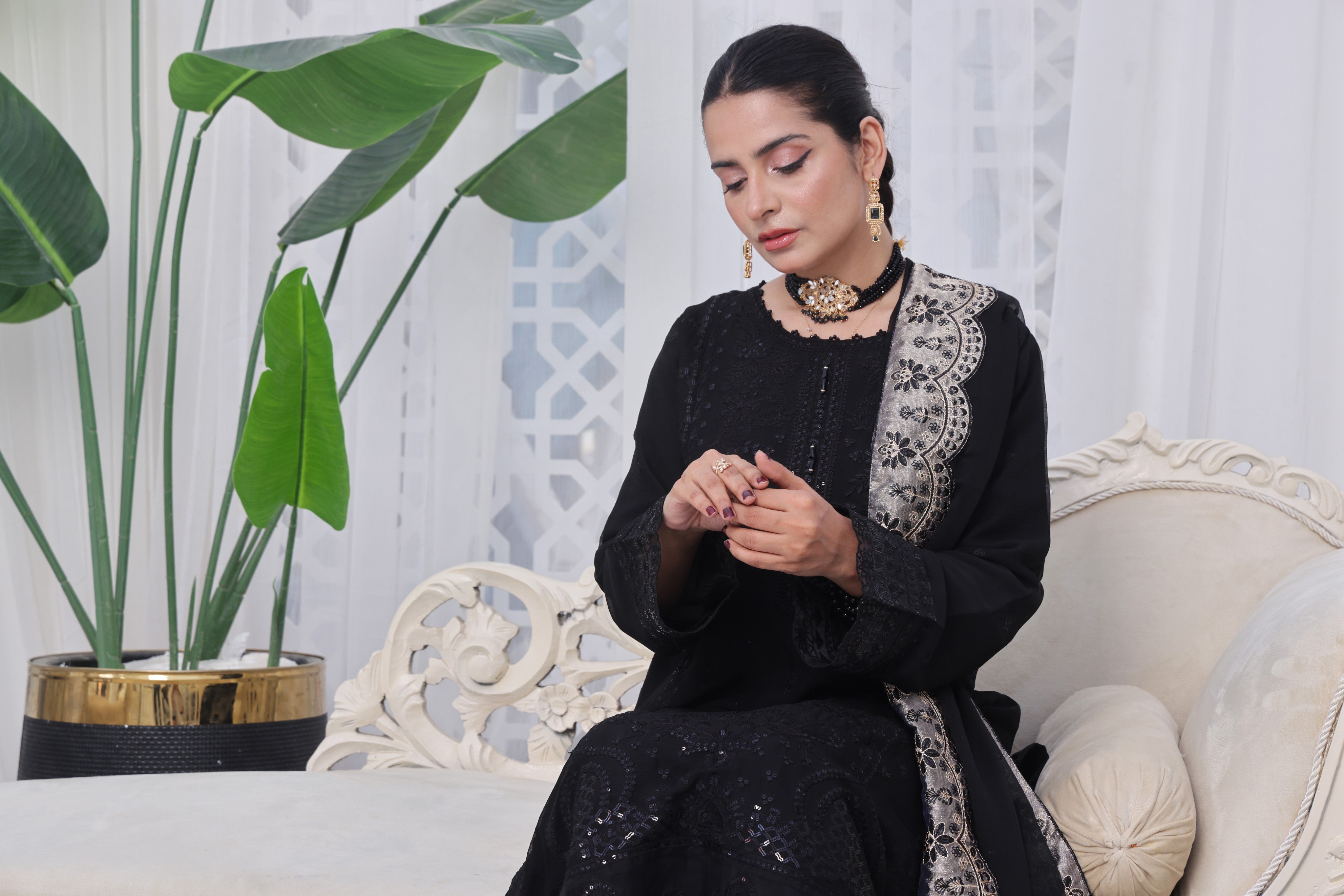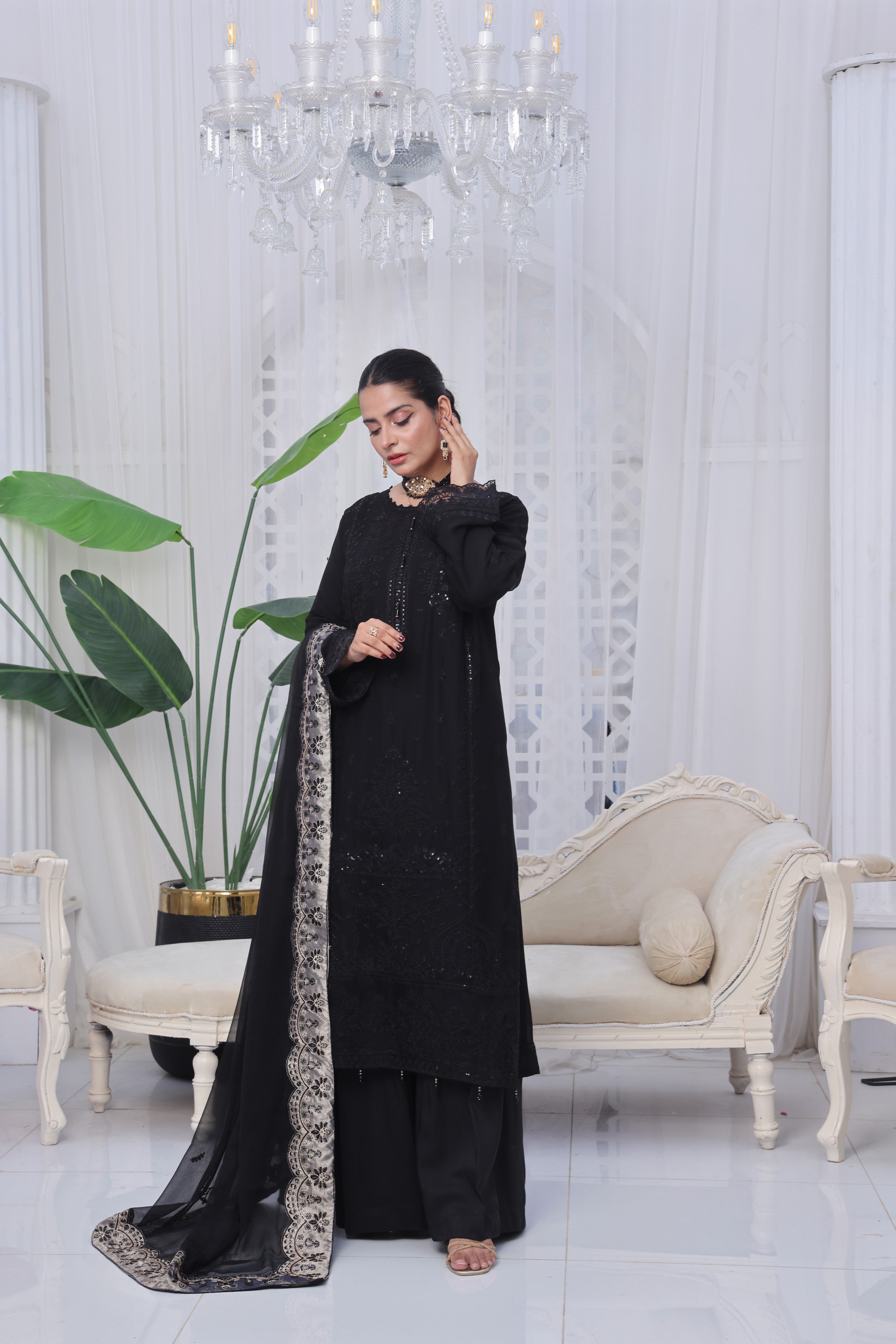 – a sophisticated semi-stitched 3-piece luxury embroidered chiffon ensemble designed for timeless elegance and grace.