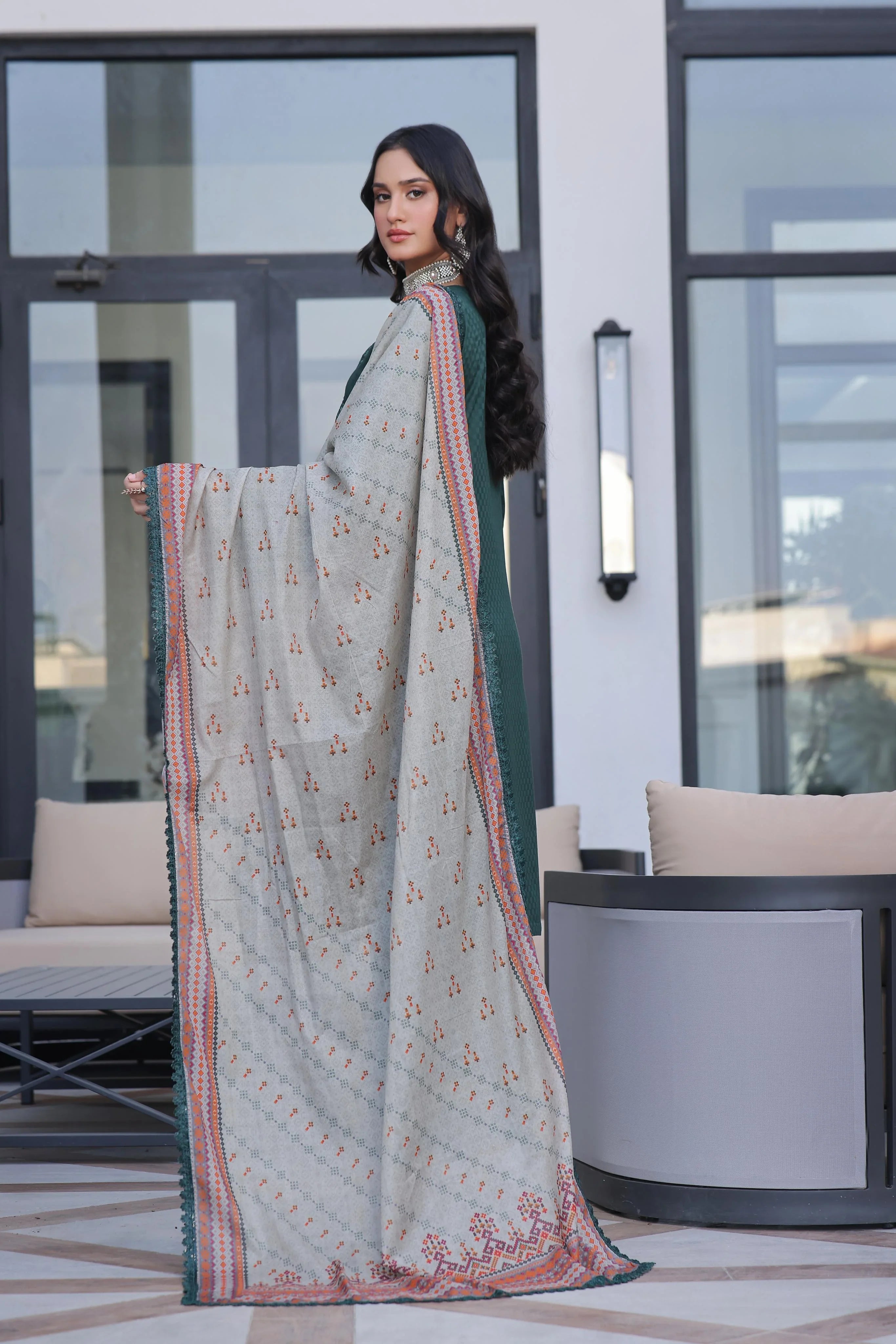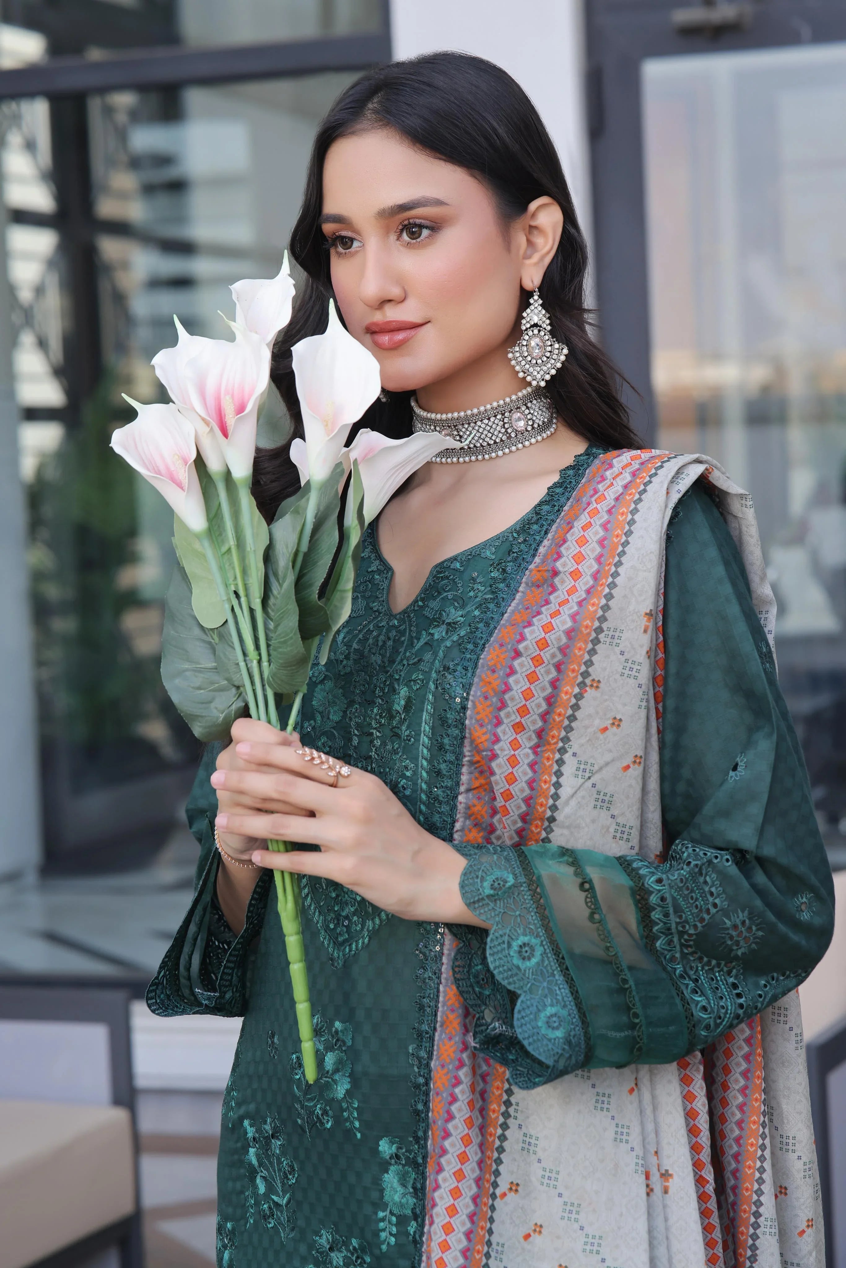 • Dupatta: A beautifully designed fancy printed lawn dupatta with delicate embroidery, adding a touch of sophistication.