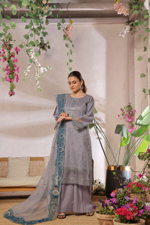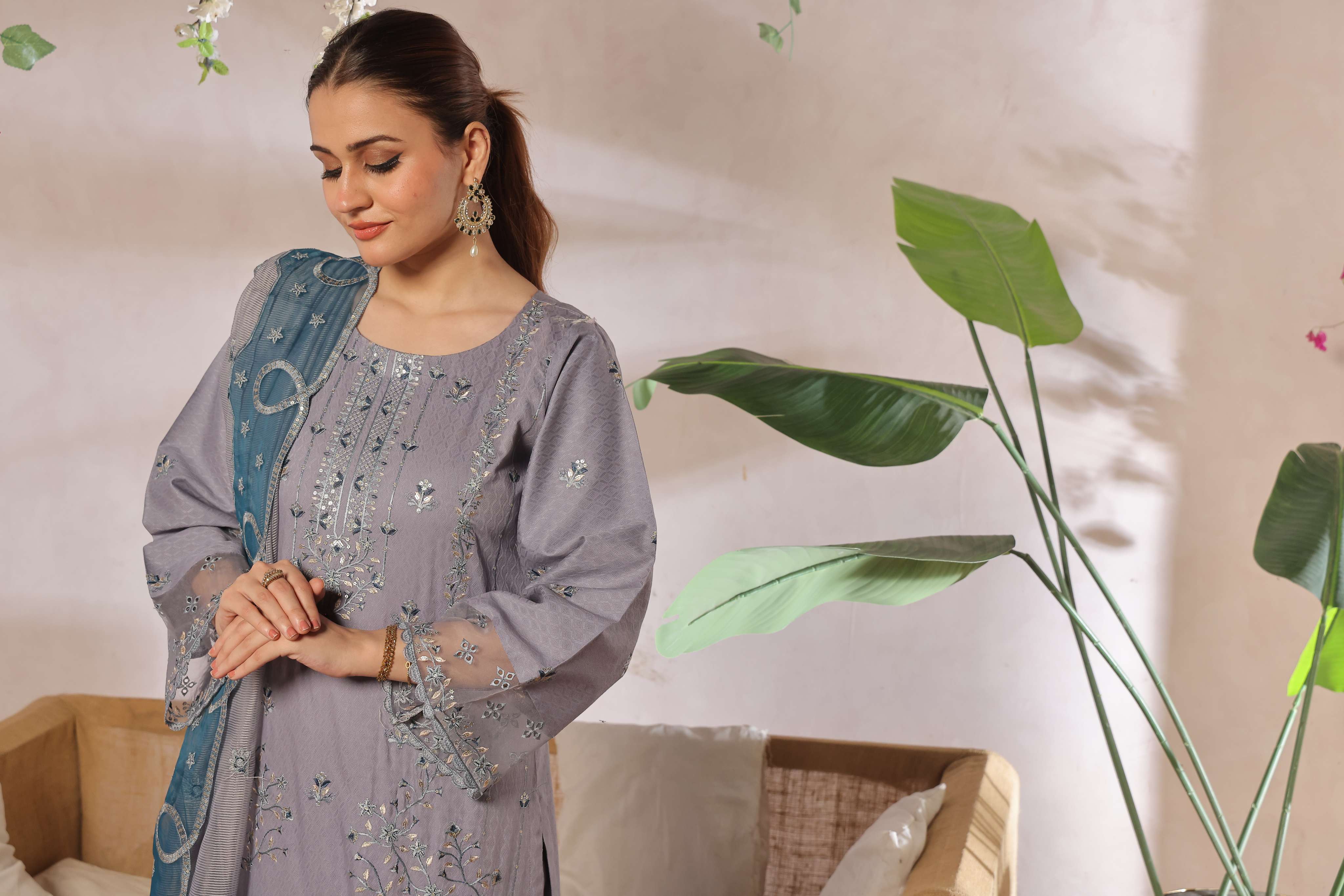 Dressline New Semi Stitched 3 Pcs Premium Emb ChikankariJacquard Lawn Collection