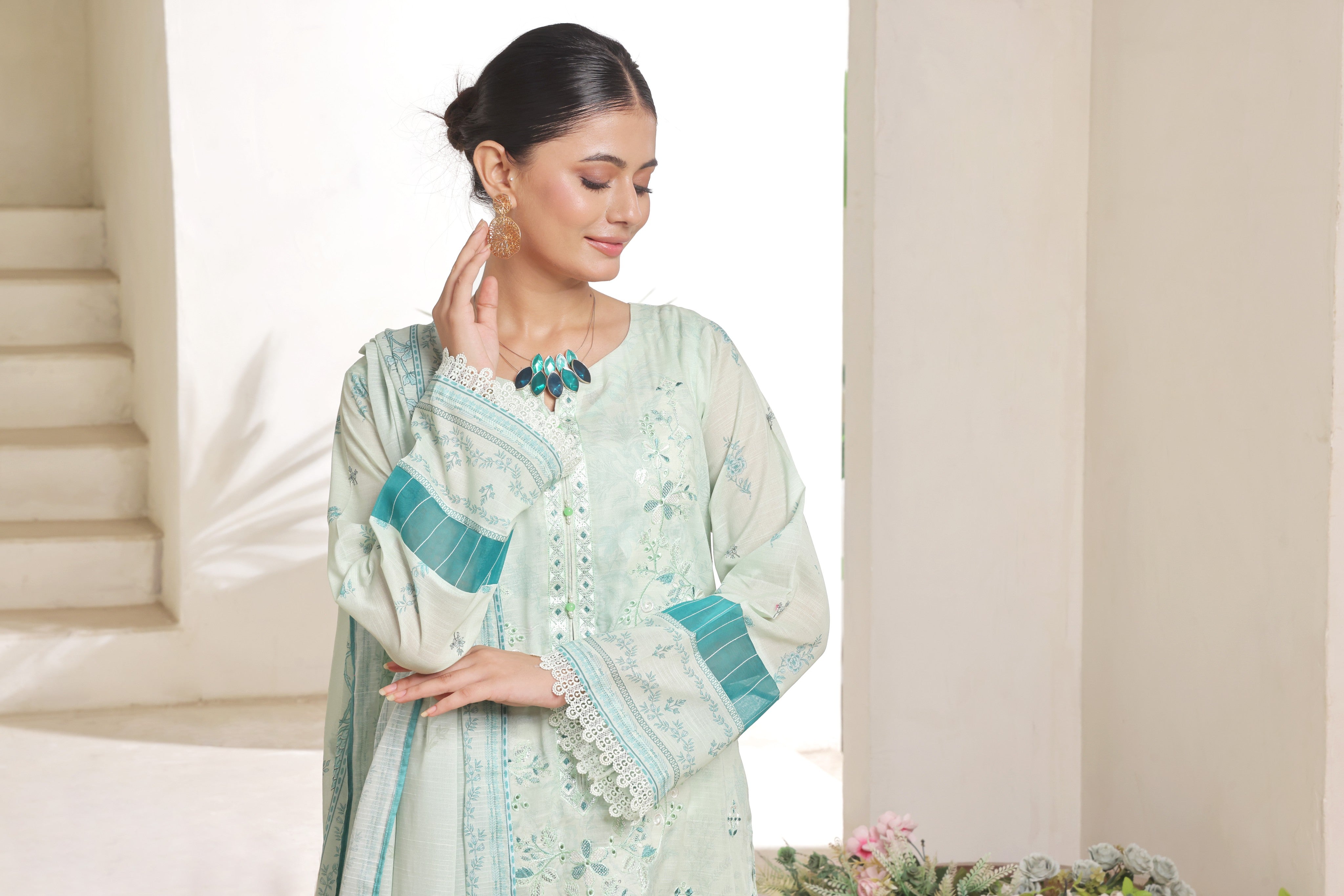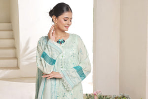 Luxuriously detailed with Heavy Chiken-Kari Embroidery on premium Bana Dora Digital Printed Lawn – a perfect balance of texture, color, and finesse.