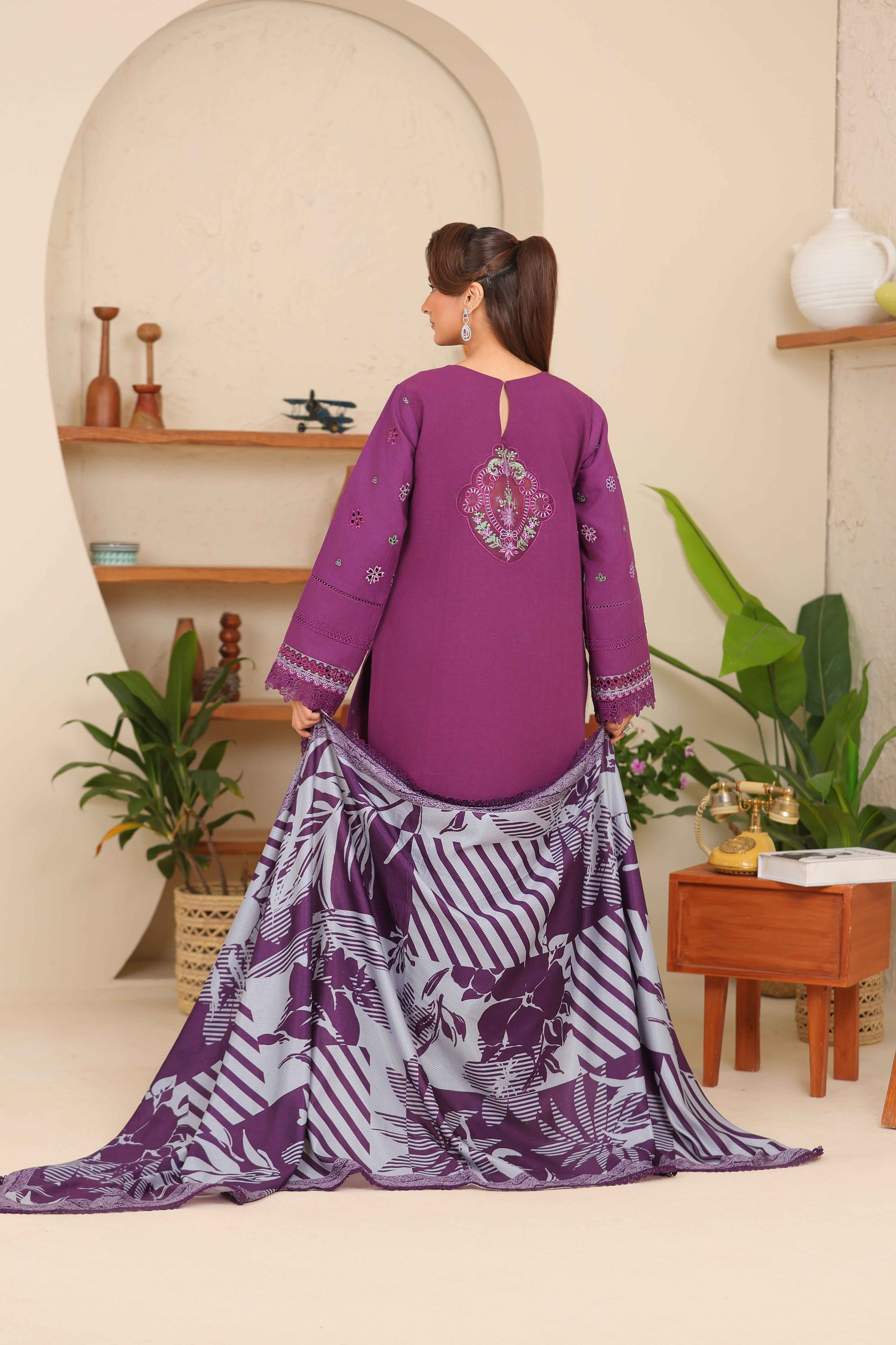 Sahiba By Huma Gul Unstitched 3 Piece Premium Winter Collection'2025-Prune HG-307